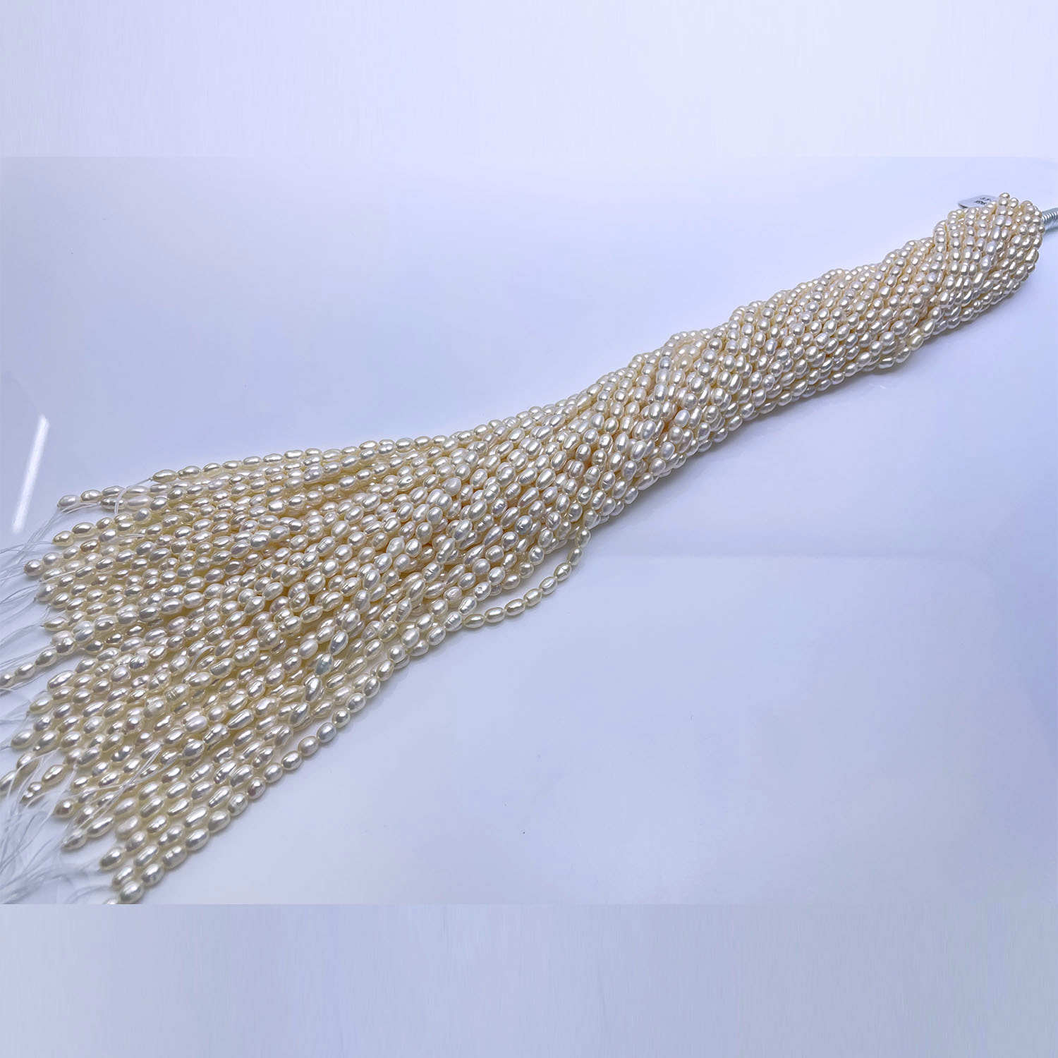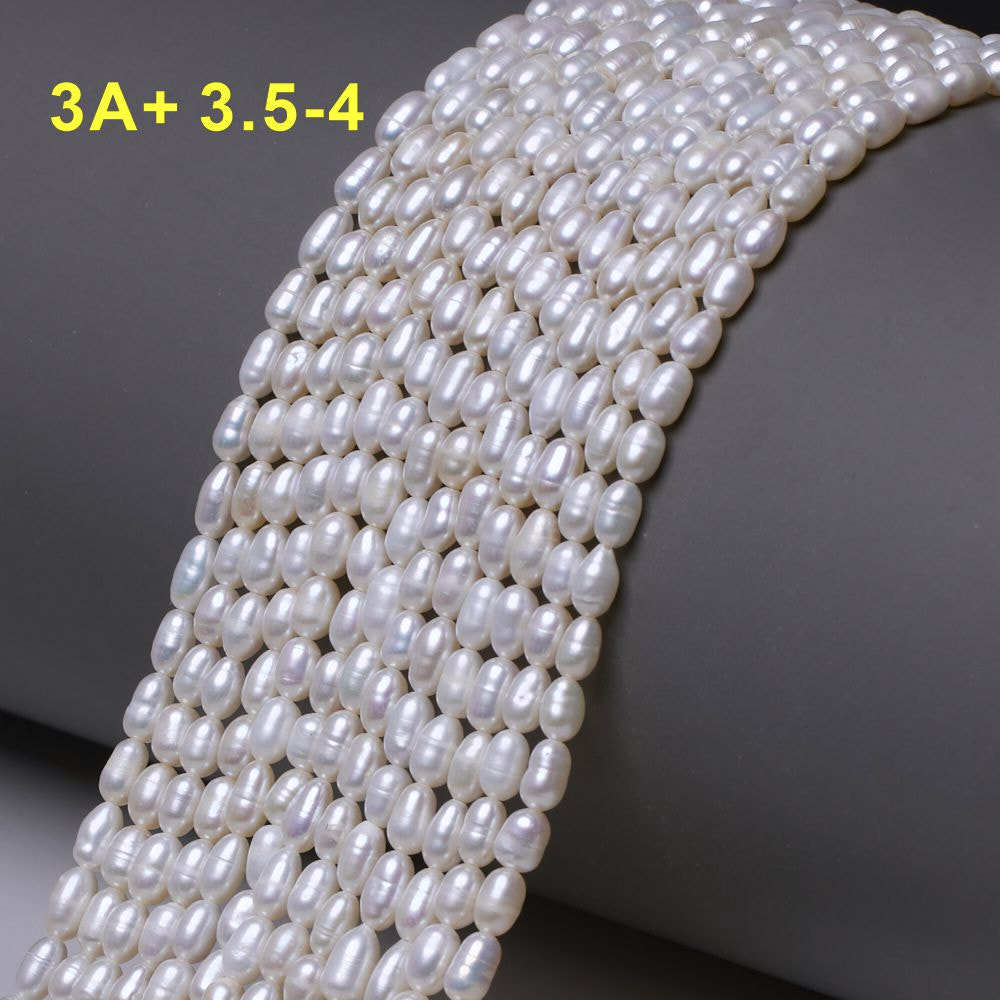 Perles d'eau douce de culture de riz, perle d'eau douce cultivée, DIY, blanc, 3-4MM, Vendu par PC