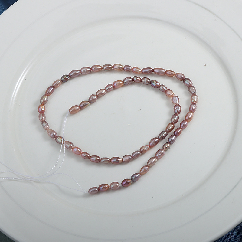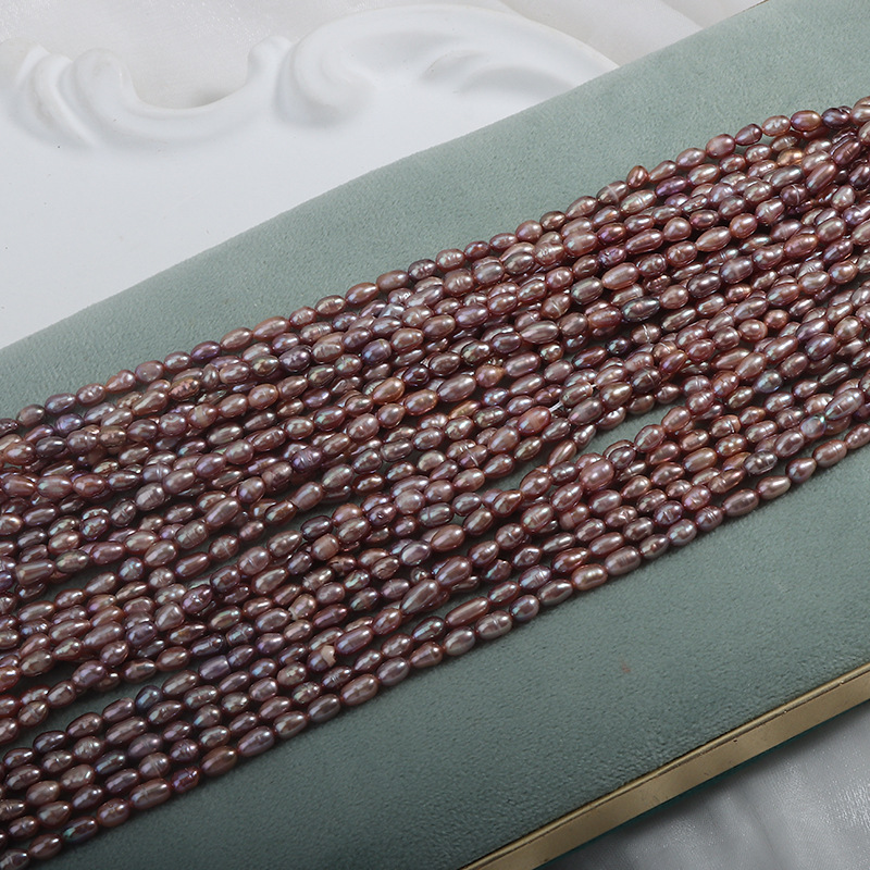 Perles d'eau douce de culture de riz, perle d'eau douce cultivée, DIY, violet, 3.5-4mm, Longueur:35 cm, Vendu par brin