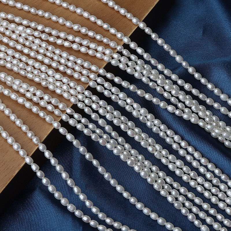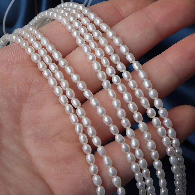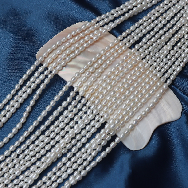 Perles d'eau douce de culture de riz, perle d'eau douce cultivée, DIY, blanc, 3-3.5mm, Longueur:37 cm, Vendu par brin