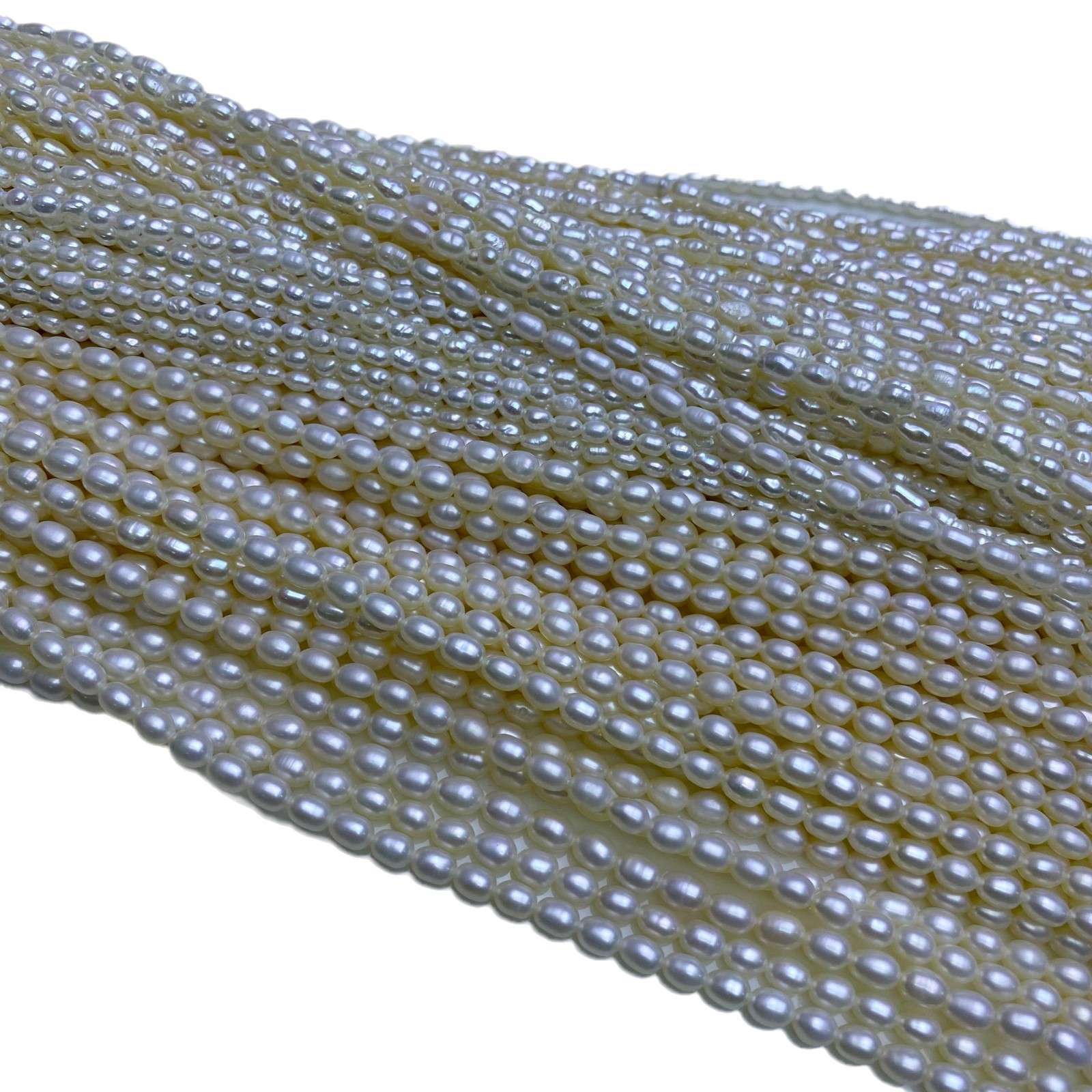 Perles d'eau douce de culture de riz, perle d'eau douce cultivée, DIY, blanc, 2.5-3.5mm, Longueur:37 cm, Vendu par brin