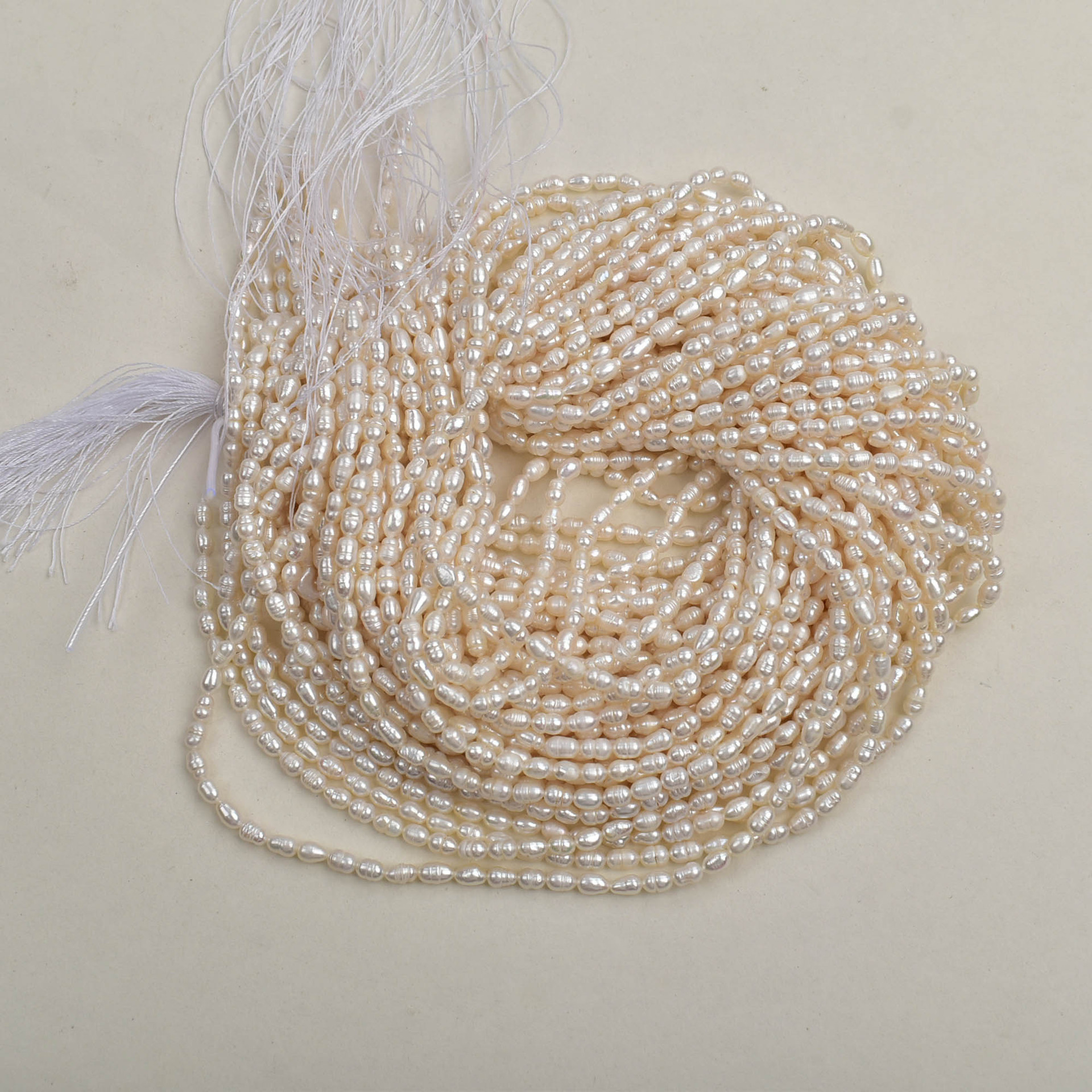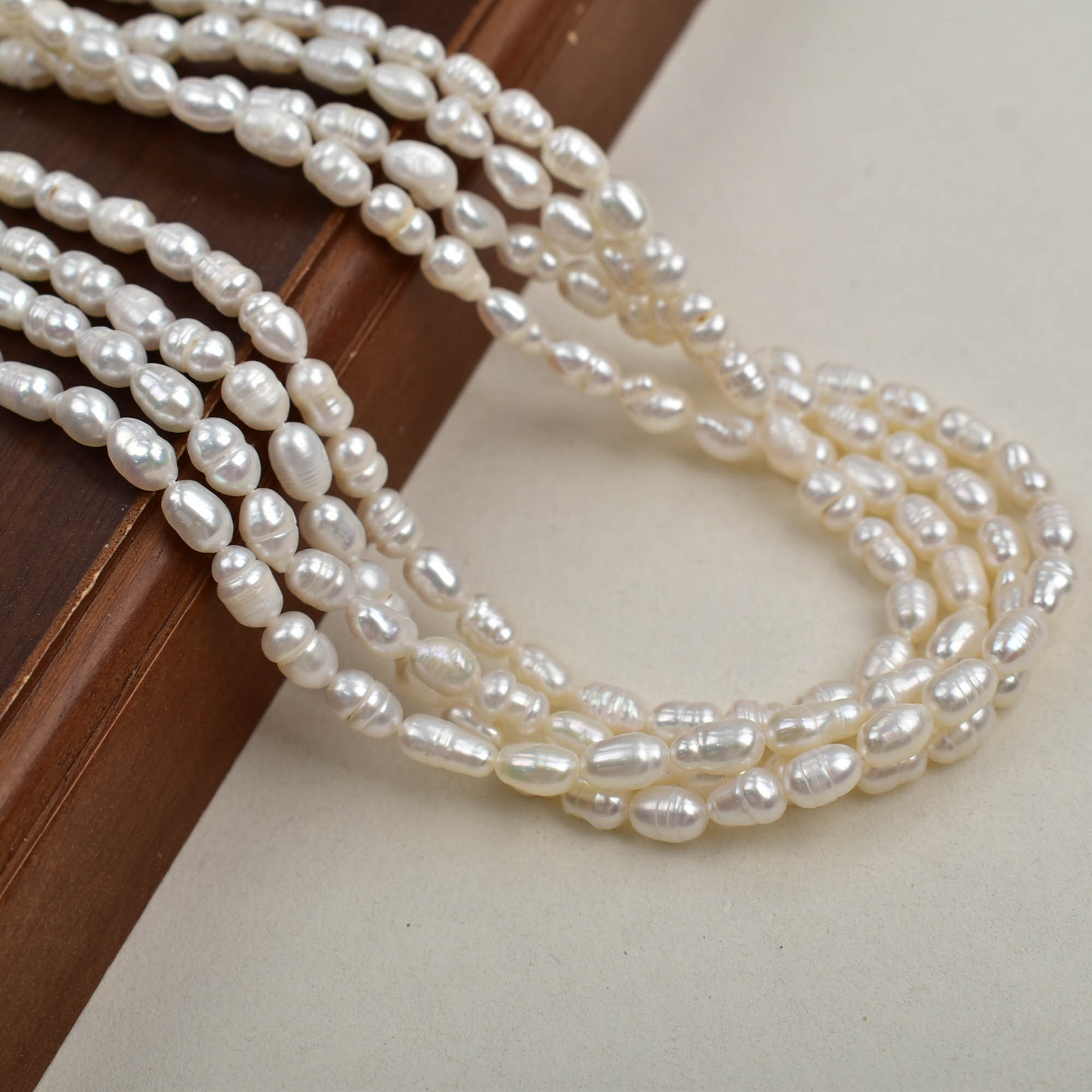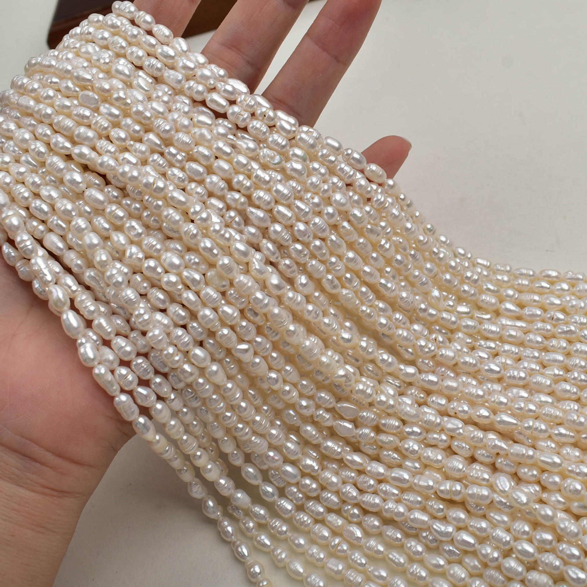 Perles d'eau douce de culture de riz, perle d'eau douce cultivée, DIY, blanc, 4-5mm, Longueur:36 cm, Vendu par brin