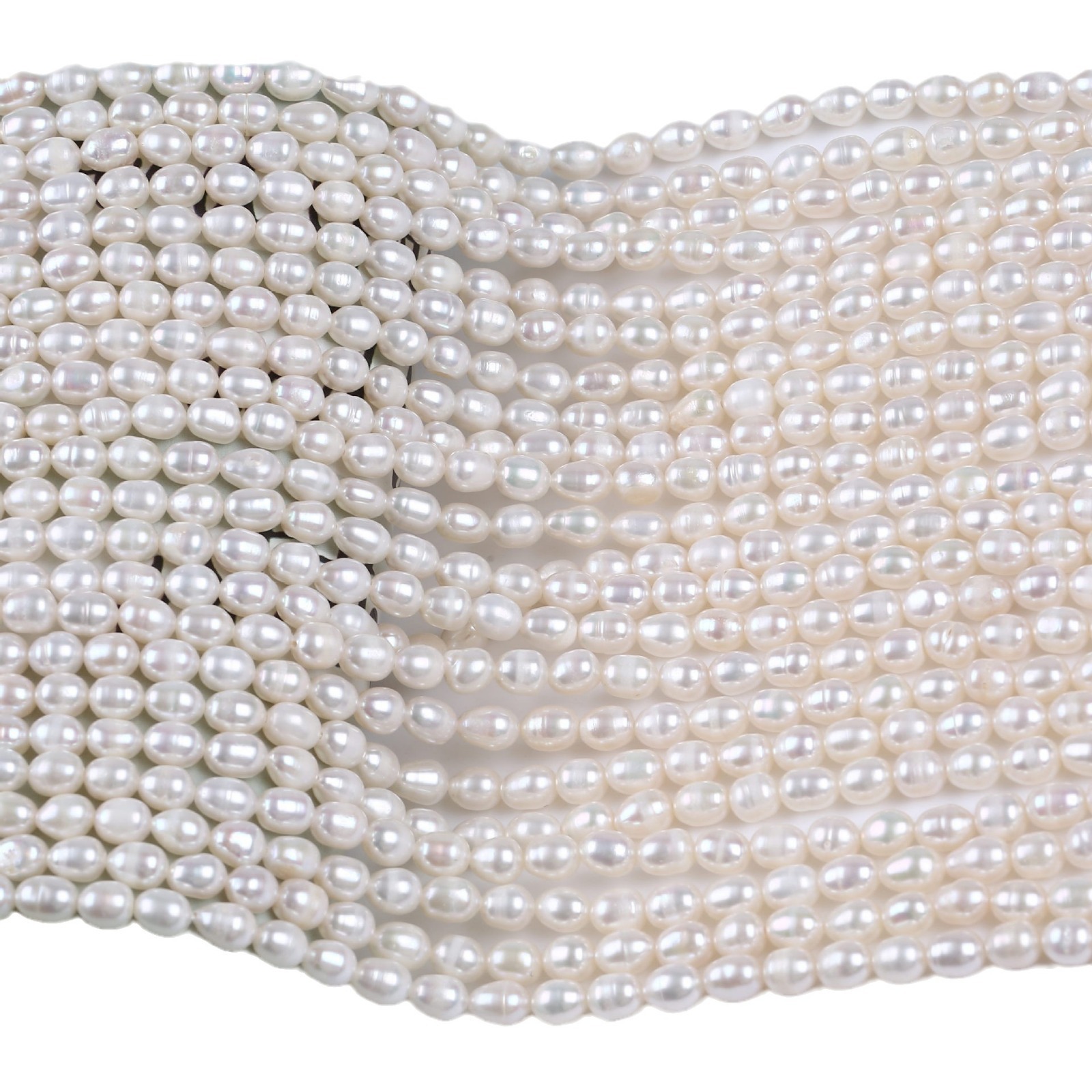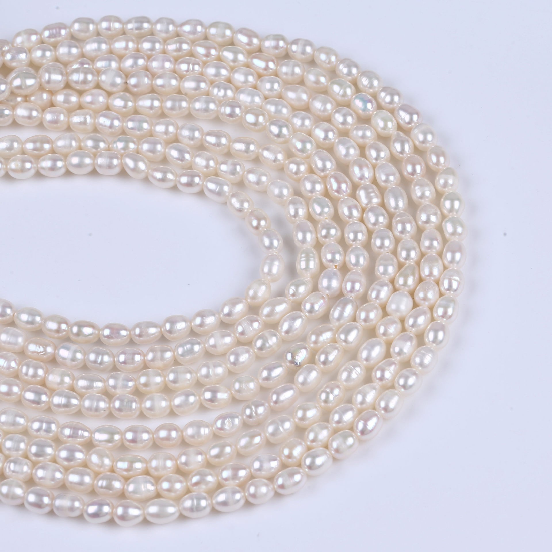 Perles d'eau douce de culture de riz, perle d'eau douce cultivée, DIY, blanc, 3.5-4.5mm, Longueur:38 cm, Vendu par brin