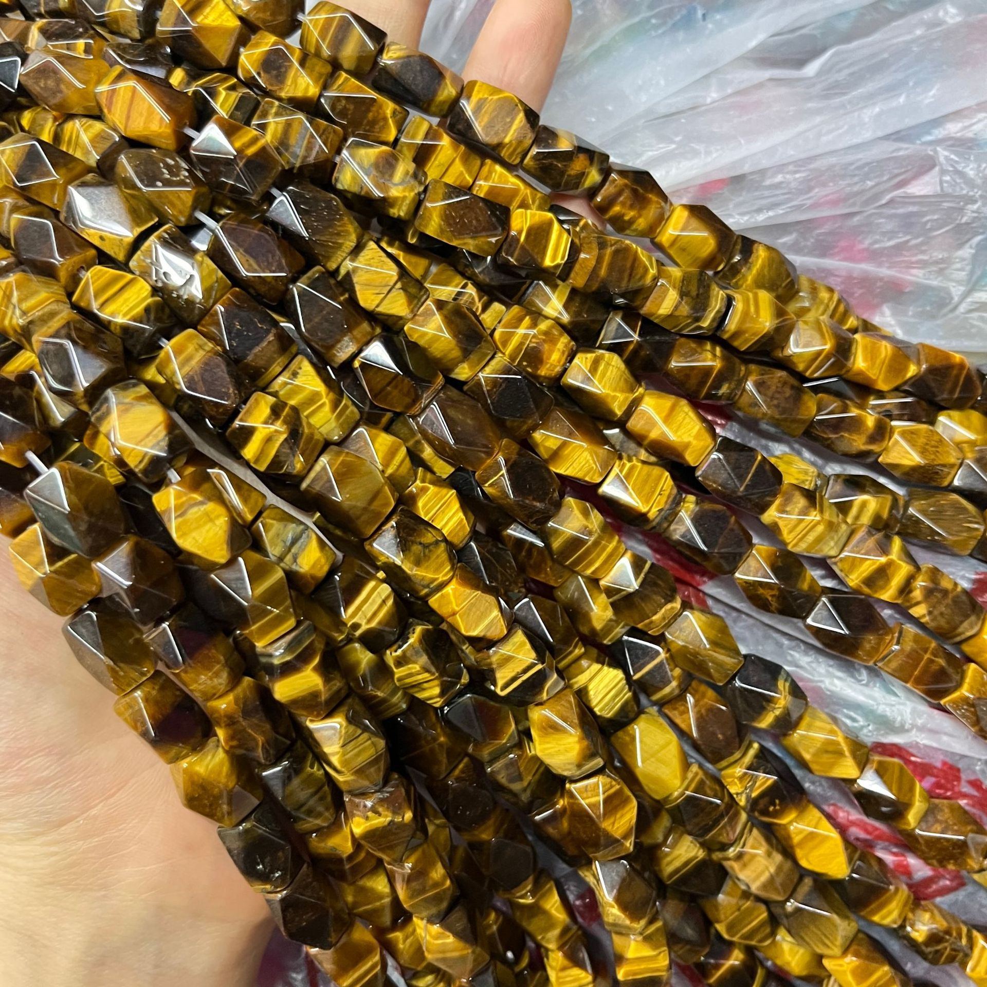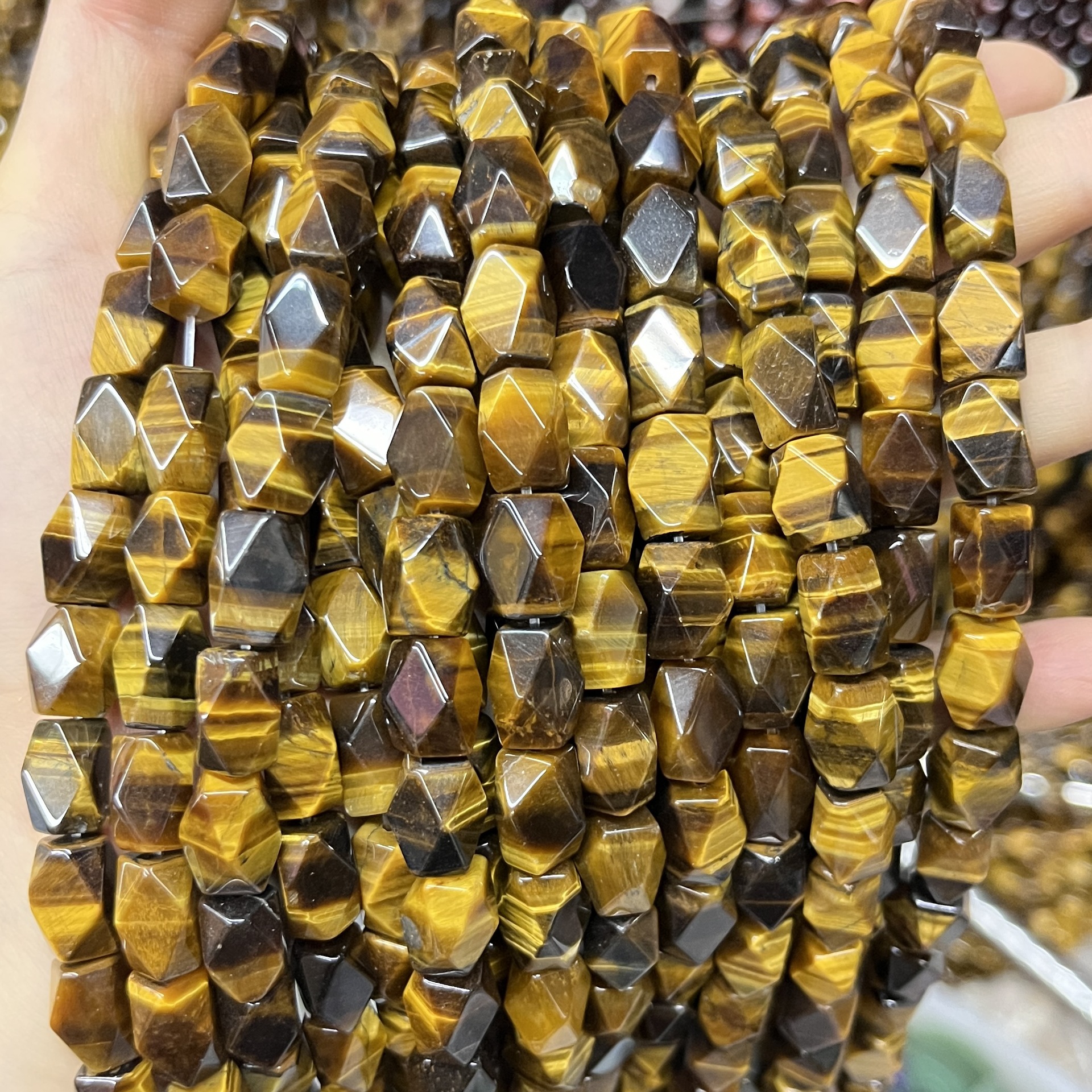 Perles d'Oeil de tigre, DIY & facettes, Jaune, 8x12mm, Environ 31PC/brin, Vendu par brin