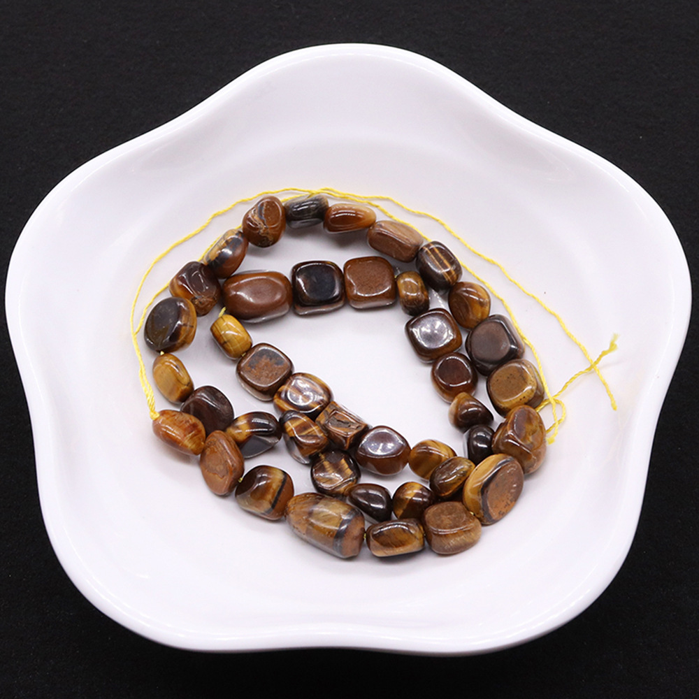 Perles d'Oeil de tigre, Irrégulière, DIY, Jaune, 10mm, Longueur:Environ 38 cm, Vendu par brin