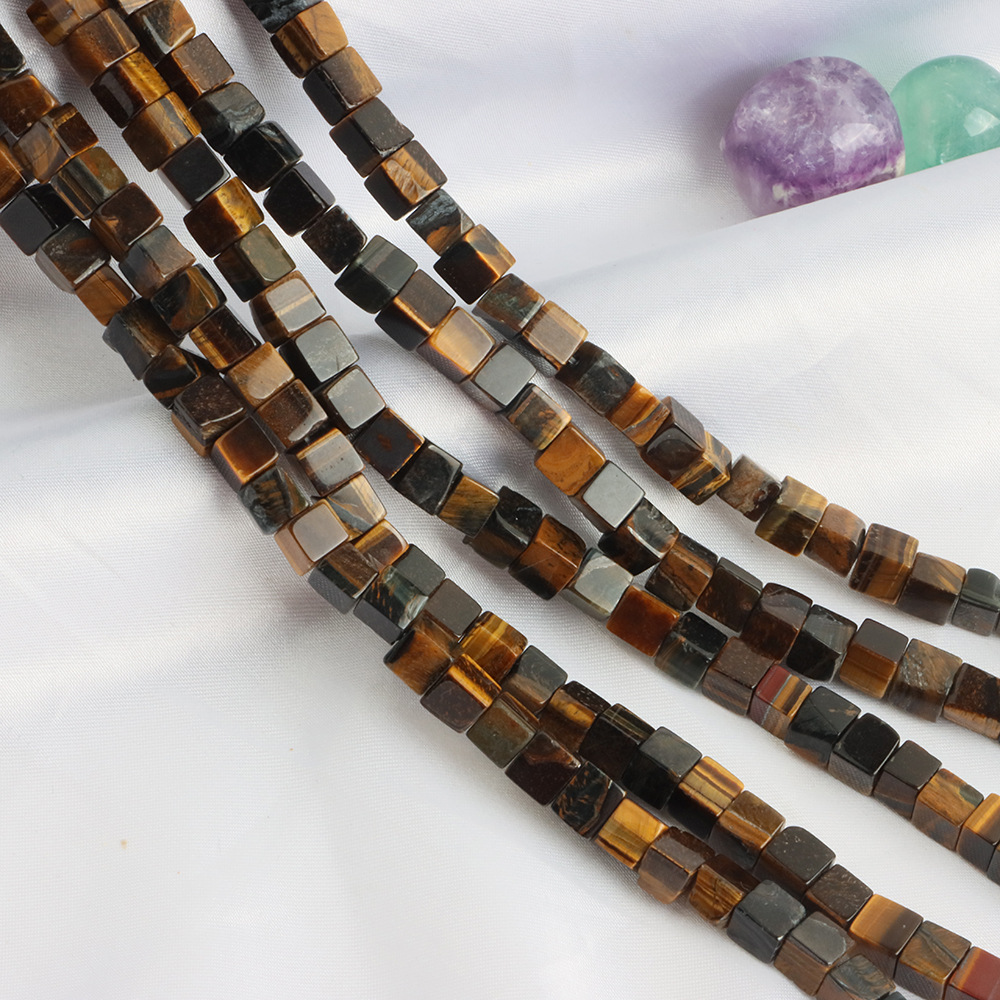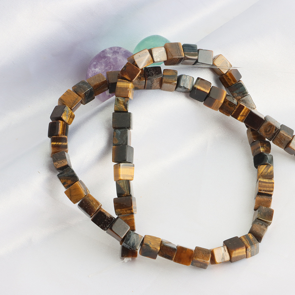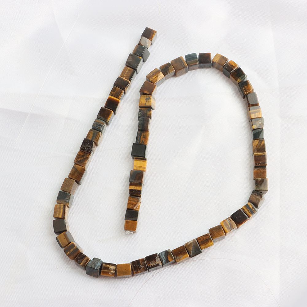Perles d'Oeil de tigre, DIY, couleurs mélangées, 6x6mm, Longueur:40 cm, Vendu par PC
