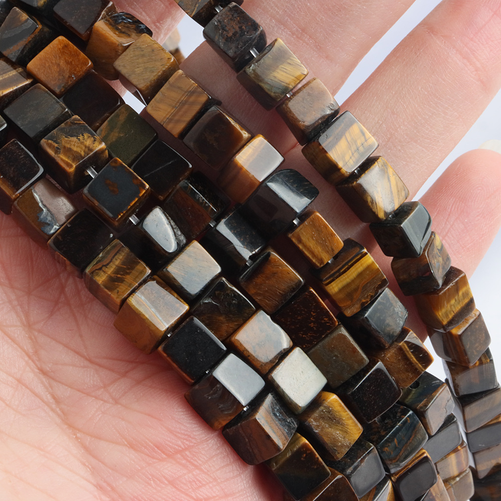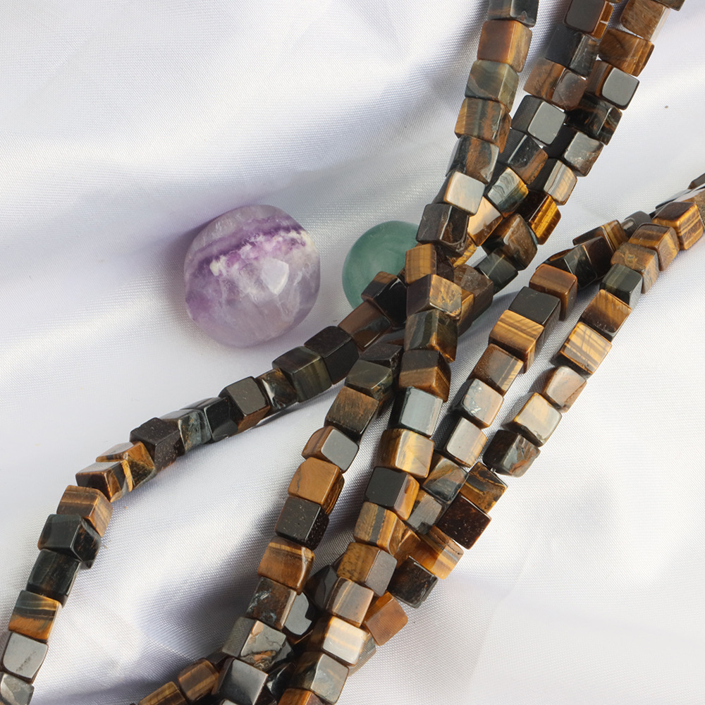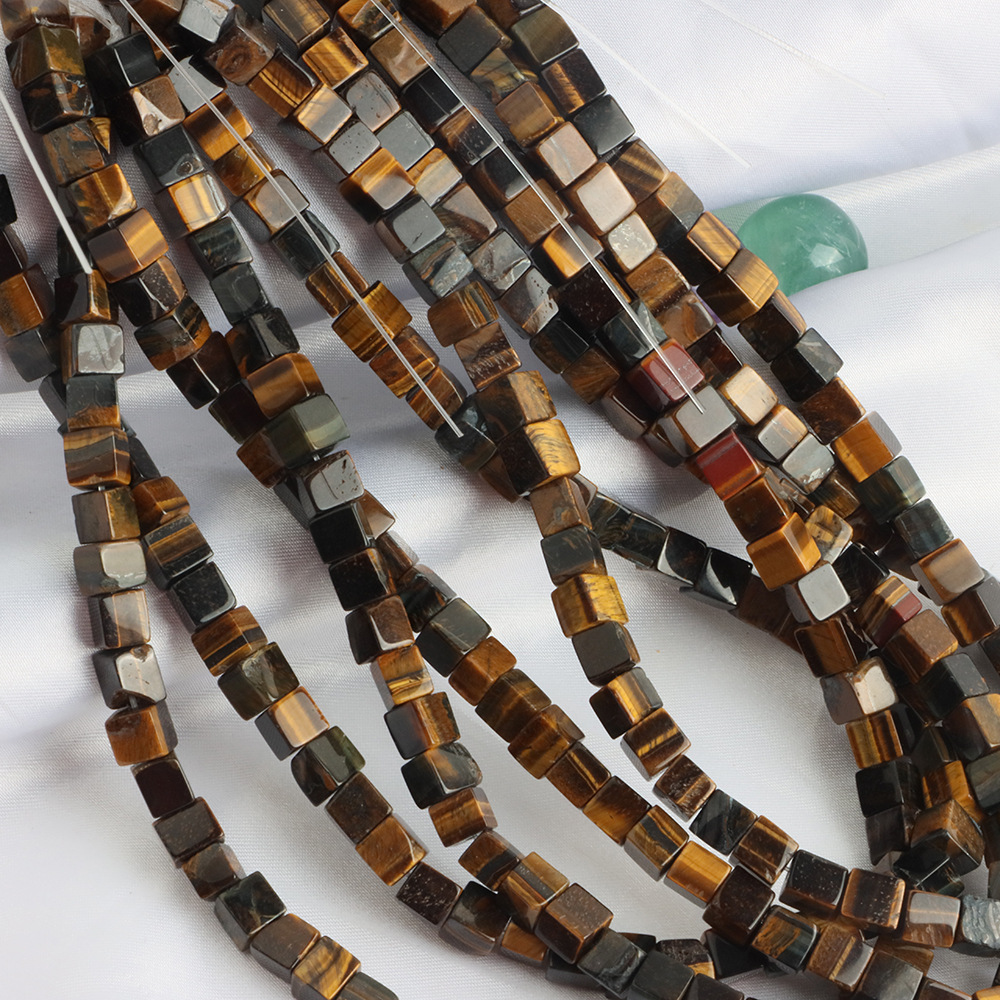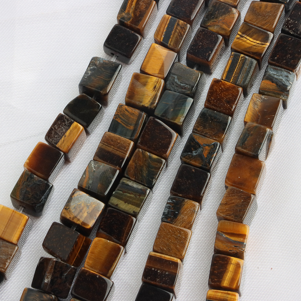 Perles d'Oeil de tigre, DIY, couleurs mélangées, 6x6mm, Longueur:40 cm, Vendu par PC