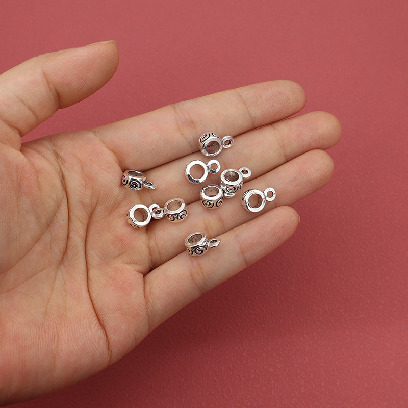 Perles de Bail en alliage de zinc , Placage de couleur argentée, DIY, 8x12mm, Diamètre intérieur:Environ 4.5mm, 100PC/sac, Vendu par sac