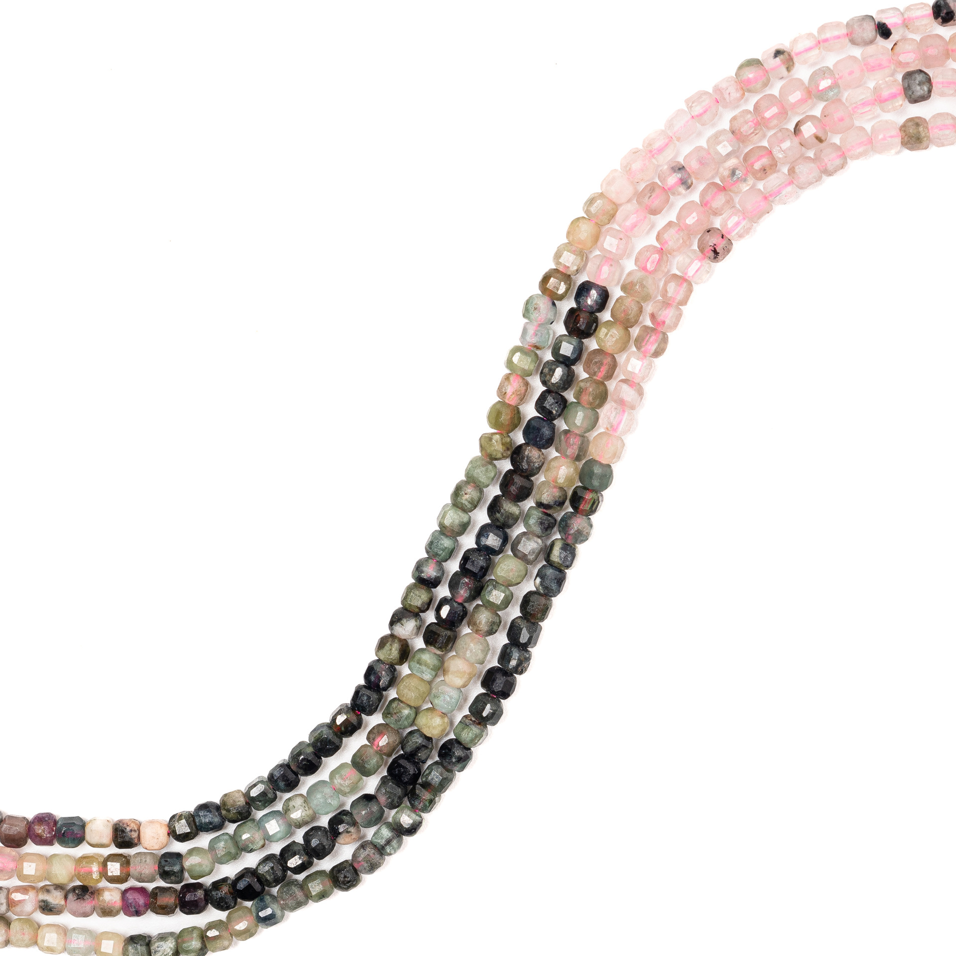 Perles de Tourmaline naturels, cadre, DIY, couleurs mélangées, 2.5x2.5mm, Longueur:Environ 38 cm, Vendu par PC