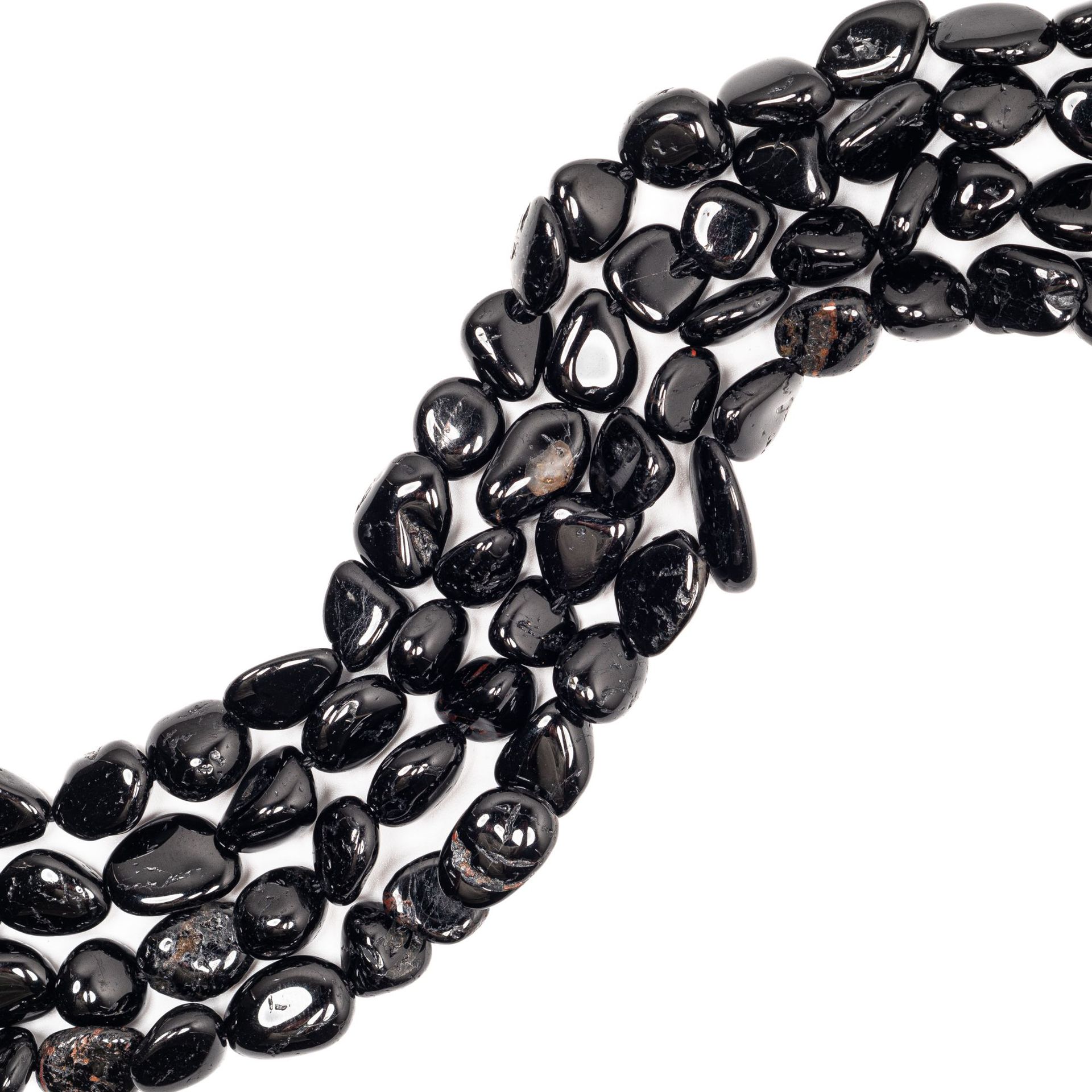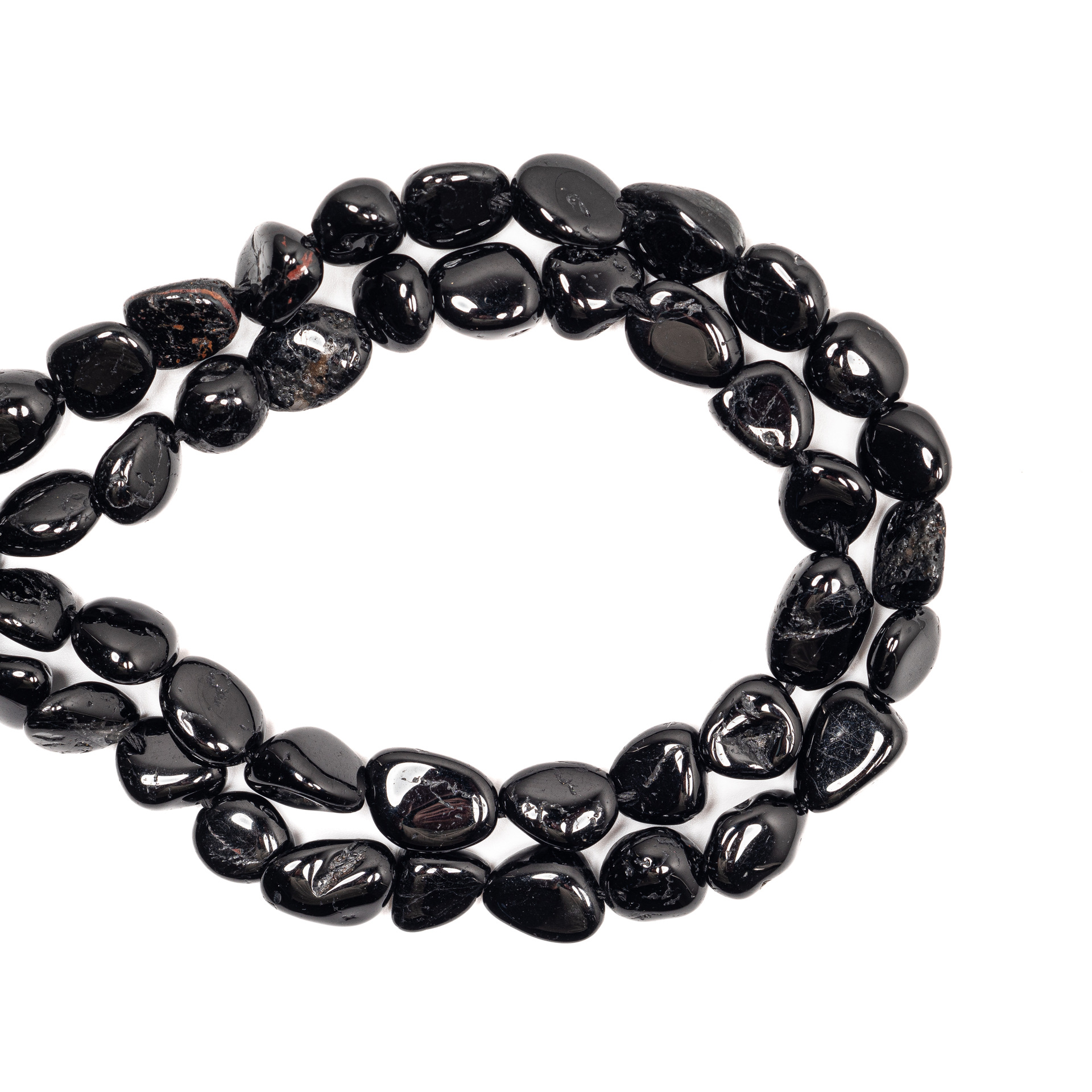 Perles de Tourmaline naturels, Schorl, pepite, DIY, noire, 8x10mm, Longueur:Environ 38 cm, Vendu par brin