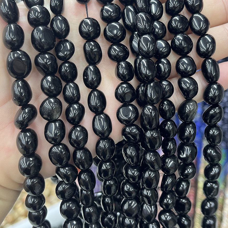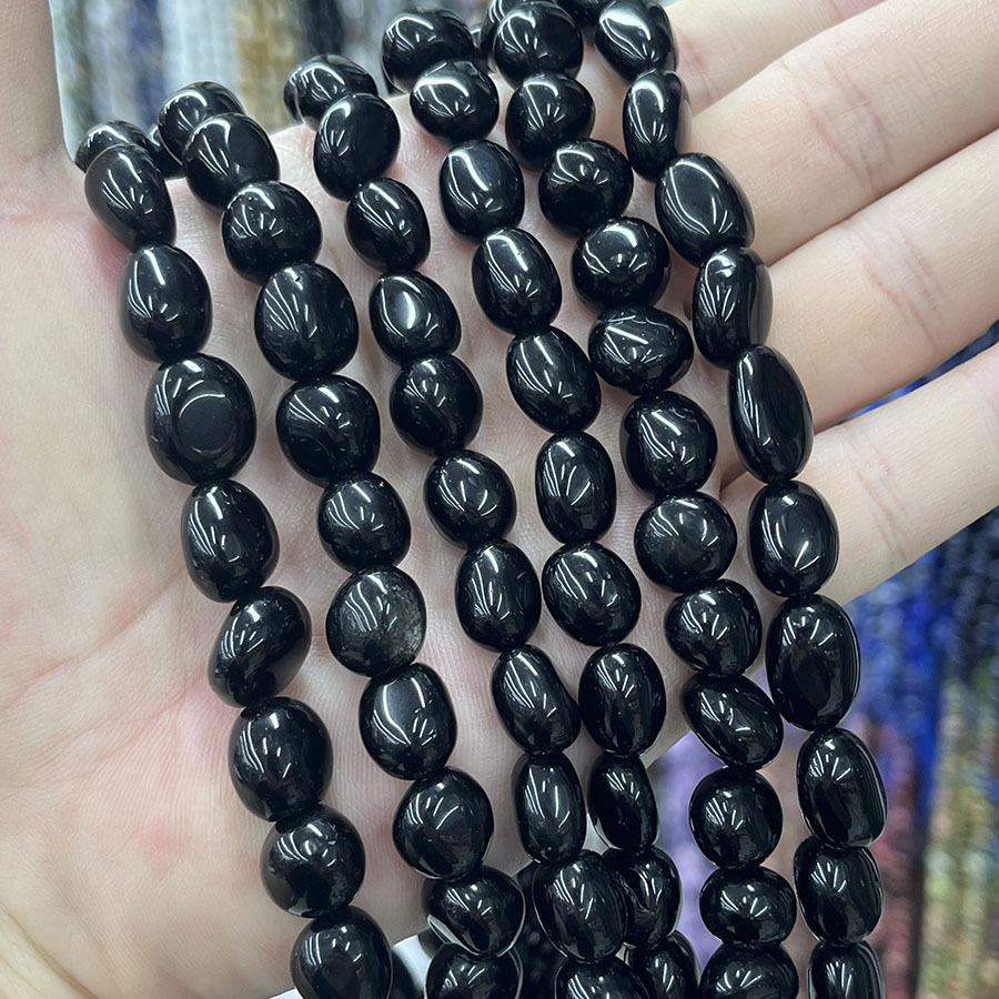 Perles de Tourmaline naturels, Schorl, DIY, noir, Longueur:38 cm, Vendu par brin