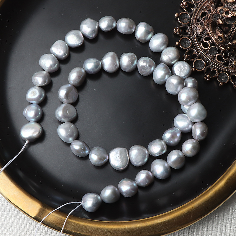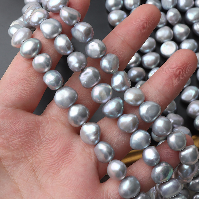 Perles de culture d'eau douce Keishi, perle d'eau douce cultivée, Baroque, DIY, gris, 9-10mm, Longueur:38 cm, Vendu par brin