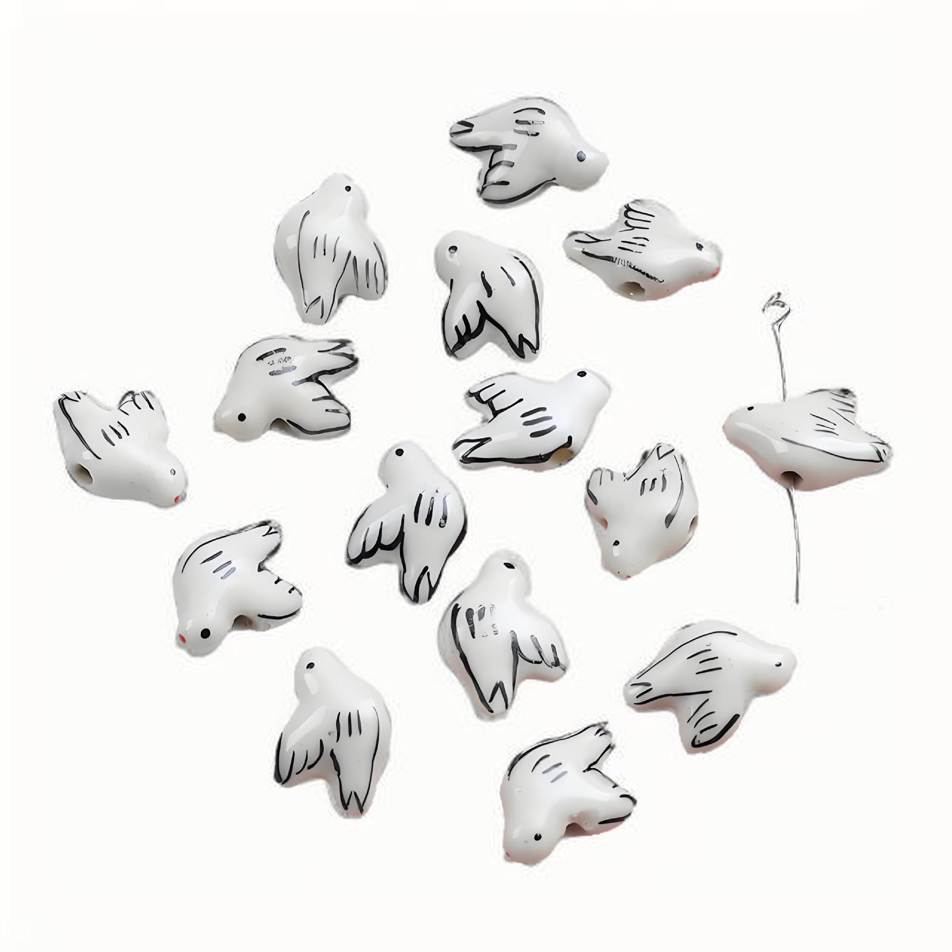 Perles de dessin de main de porcelaine, colombe, DIY, plus de couleurs à choisir, 15x20mm, 100PC/sac, Vendu par sac
