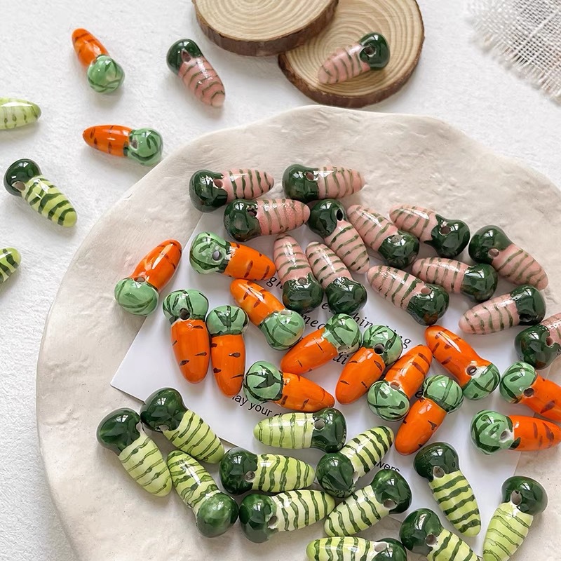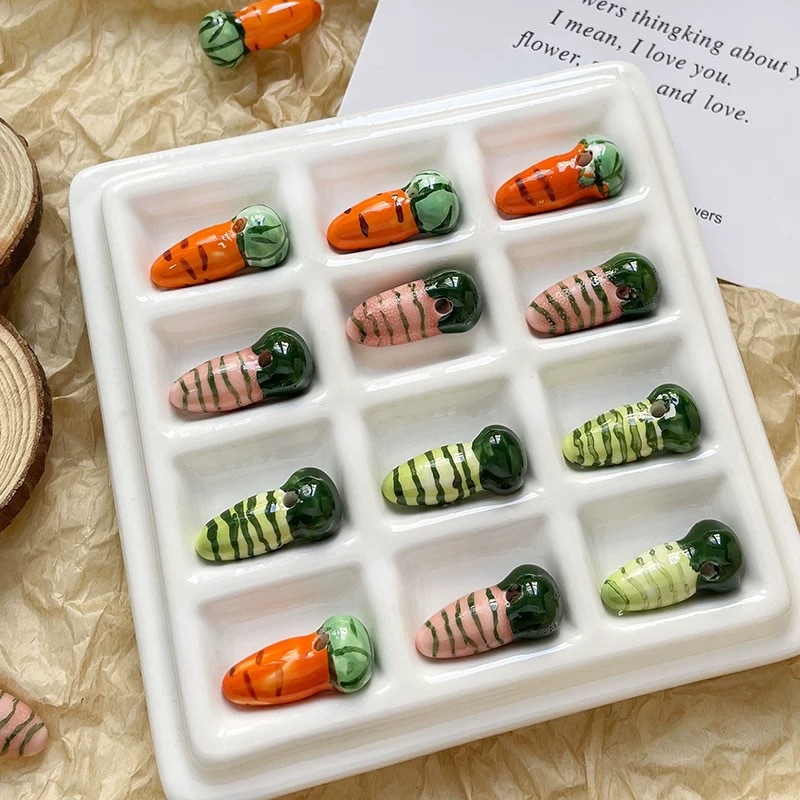 Perles de dessin de main de porcelaine, Carotte, DIY, plus de couleurs à choisir, 11x12mm, Trou:Environ 2.7mm, 100PC/sac, Vendu par sac