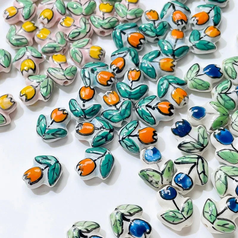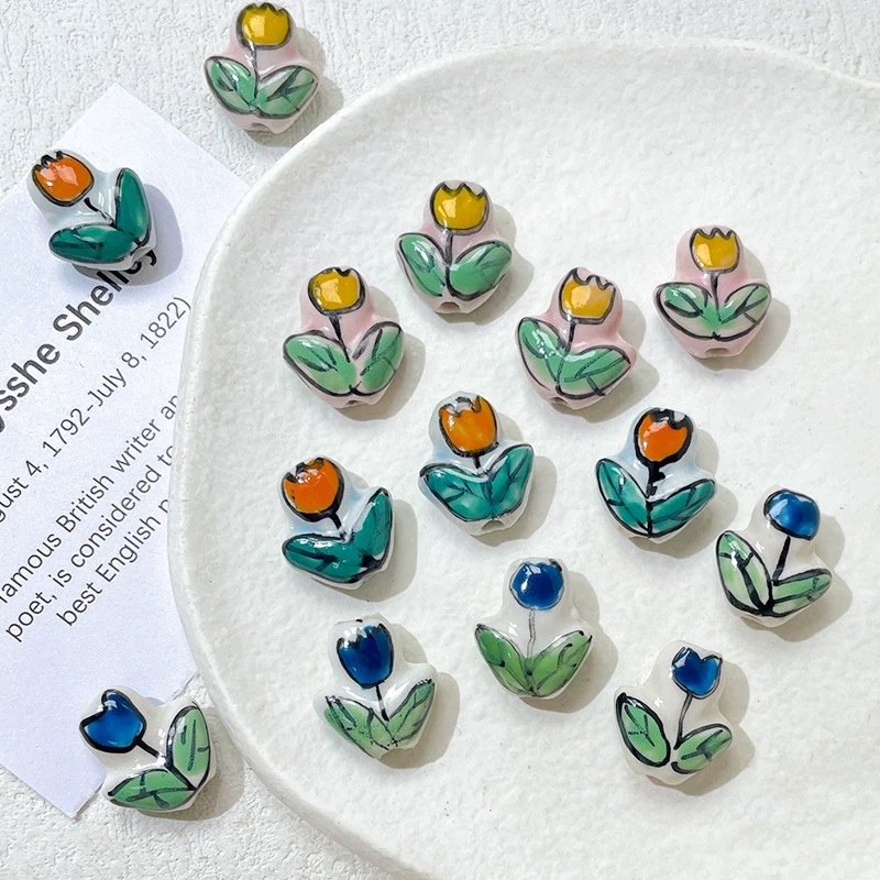 Perles de dessin de main de porcelaine, fleur, DIY, plus de couleurs à choisir, 16x15mm, Trou:Environ 1.8mm, 100PC/sac, Vendu par sac