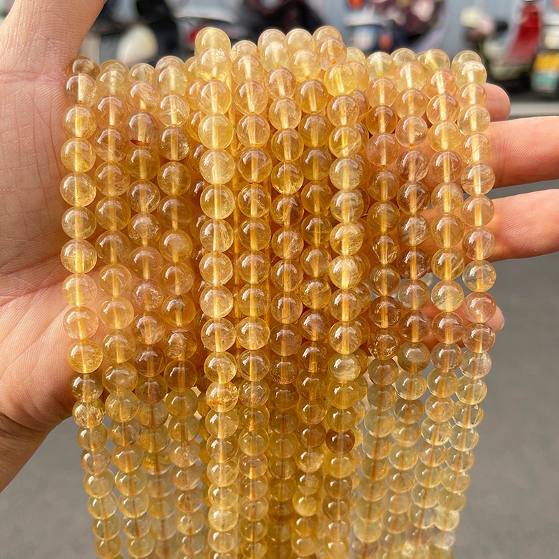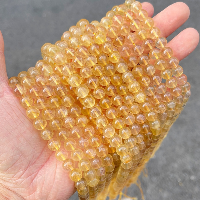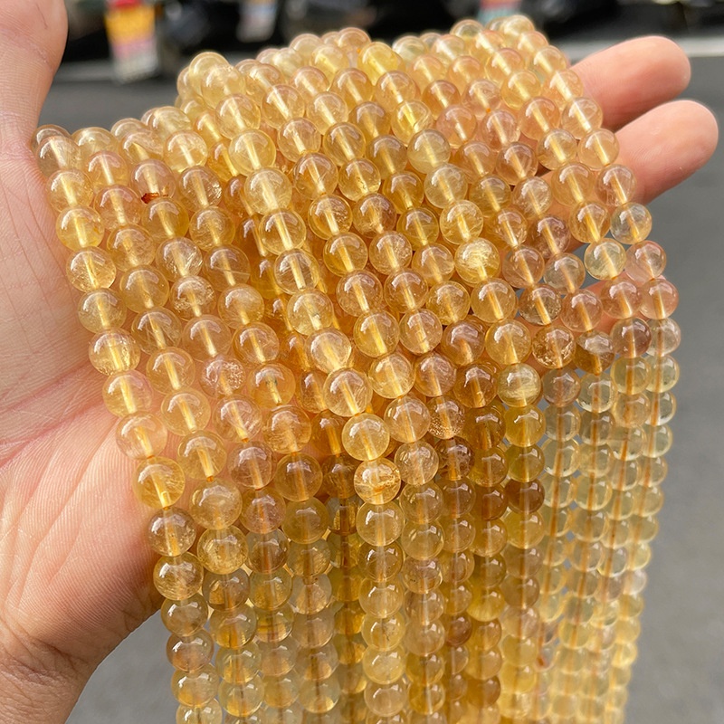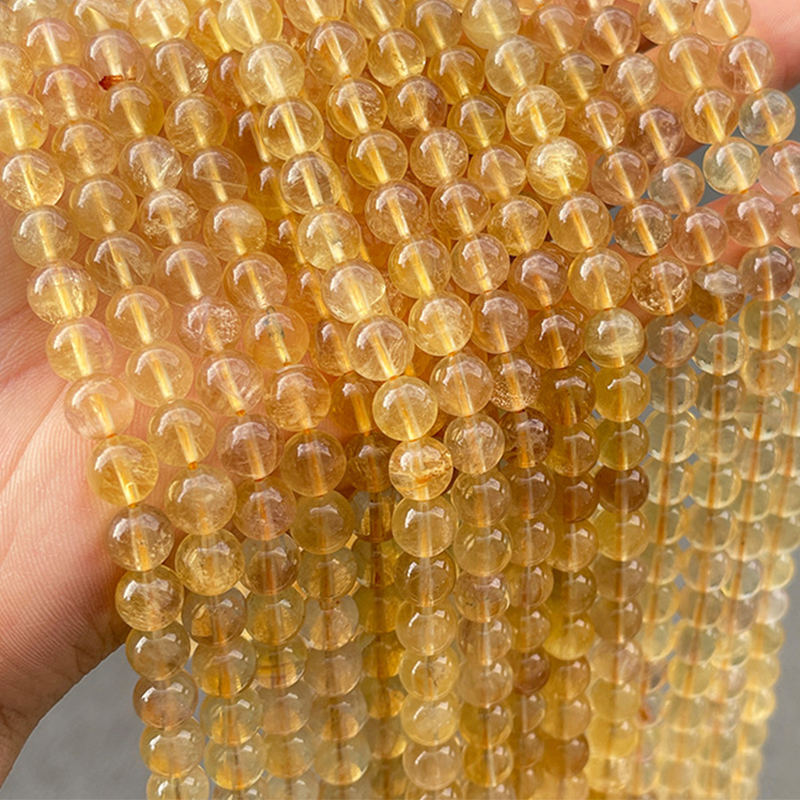 Perles de fluorite, Fluorine, Rond, poli, naturel & DIY & normes différentes pour le choix, Jaune, Vendu par brin