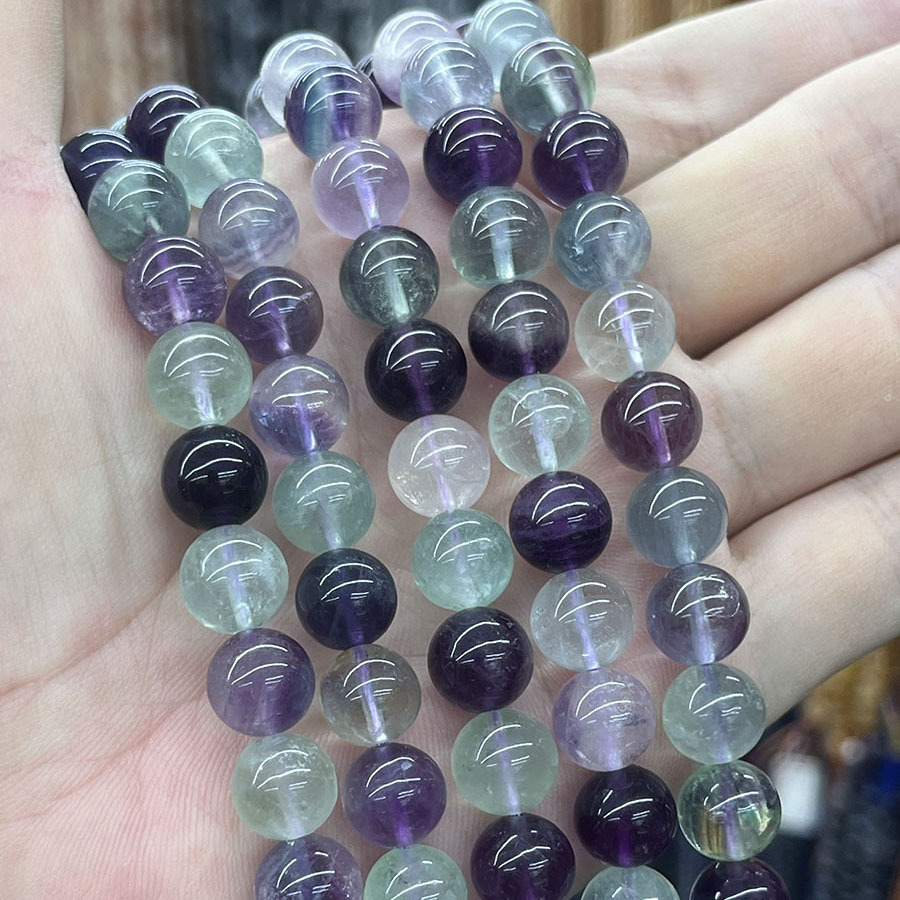 Perles de fluorite, Fluorite colorée, Rond, DIY, couleurs mélangées, Longueur:Environ 38 cm, Vendu par brin
