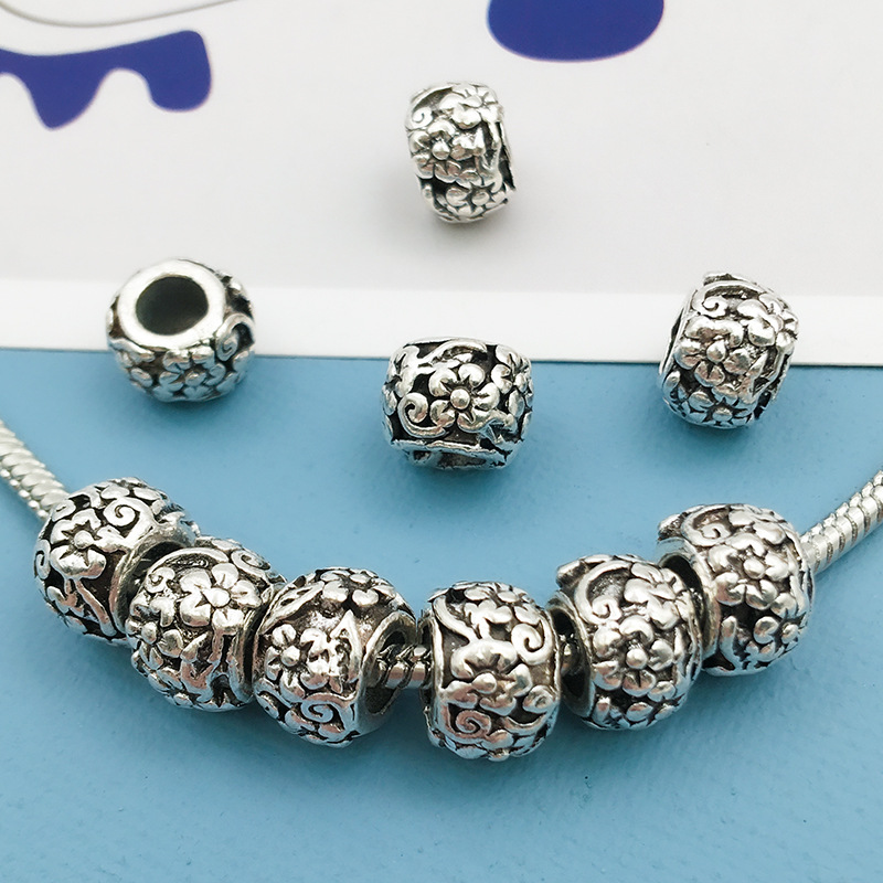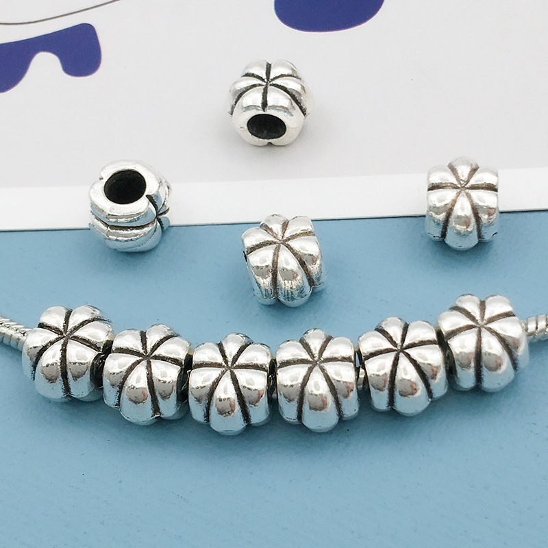 Perles de gros trou en alliage de zinc, fleur, grand trou, plus de couleurs à choisir, protéger l'environnement, sans nickel, plomb et cadmium Environ 6.5mm, Environ Vendu par kg