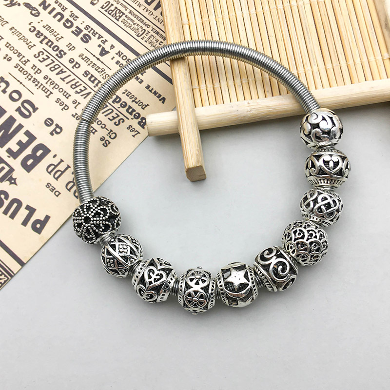 Perles de gros trou en alliage de zinc, Seau, Placage de couleur argentée, DIY & avec strass, plus de couleurs à choisir Environ Vendu par sac
