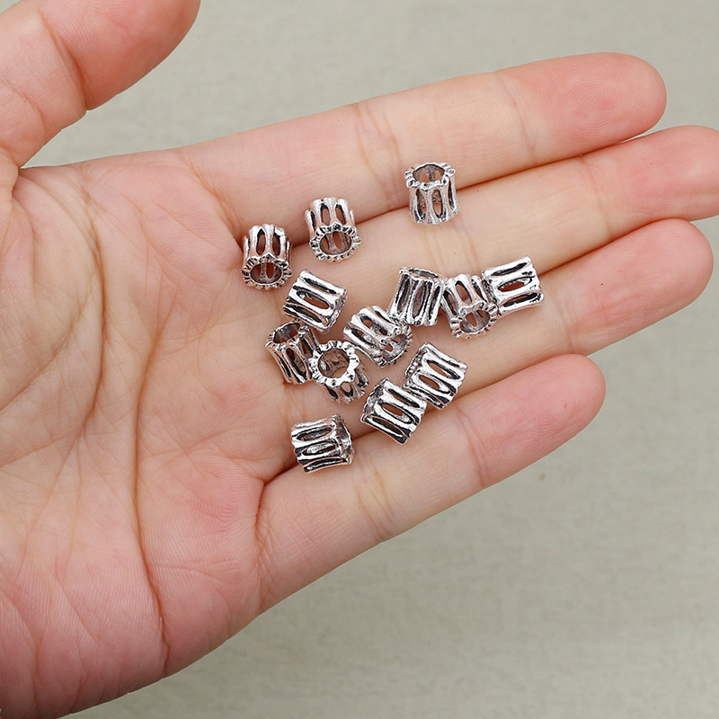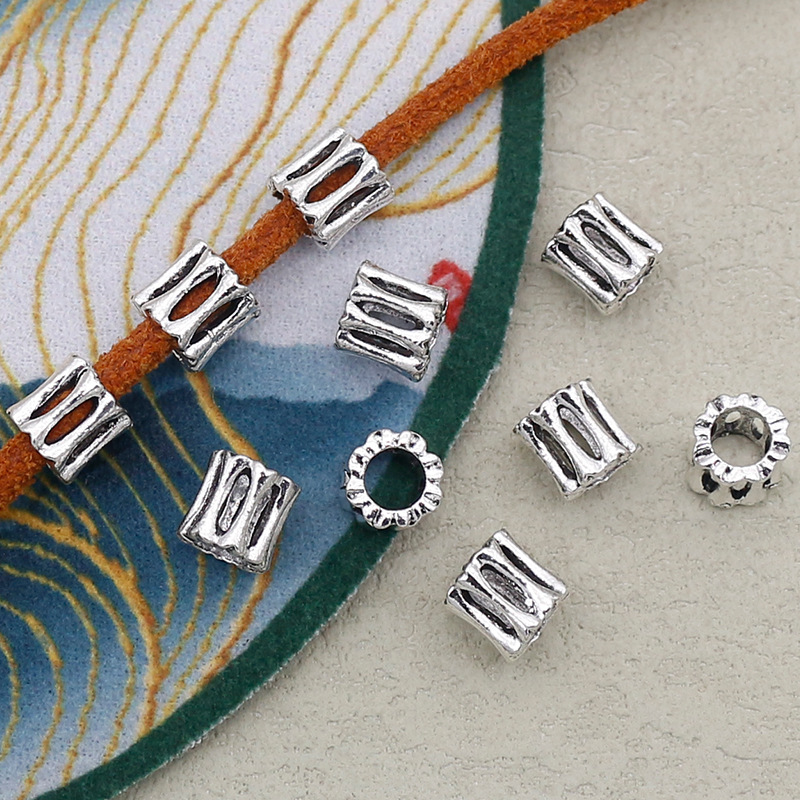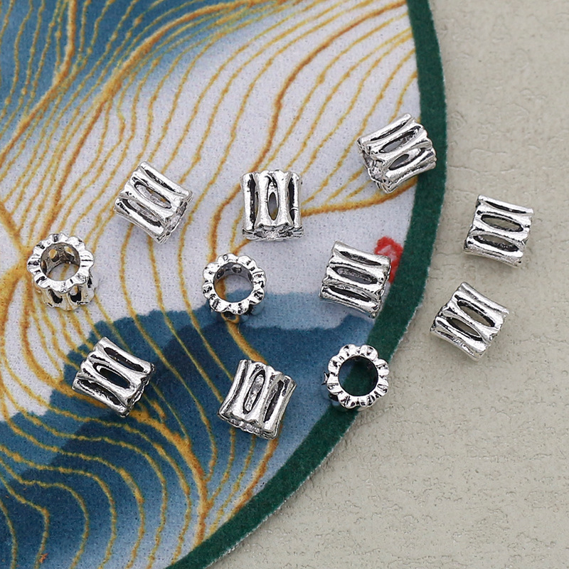 Perles de gros trou en alliage de zinc, Placage de couleur argentée, DIY, argent, 7x7mm, Trou:Environ 4mm, Vendu par PC