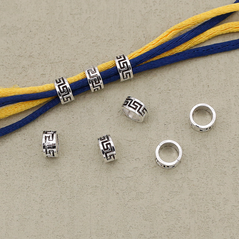 Perles de gros trou en alliage de zinc, Placage de couleur argentée, DIY, argent, 7.5x4mm, Trou:Environ 5.5mm, Vendu par PC