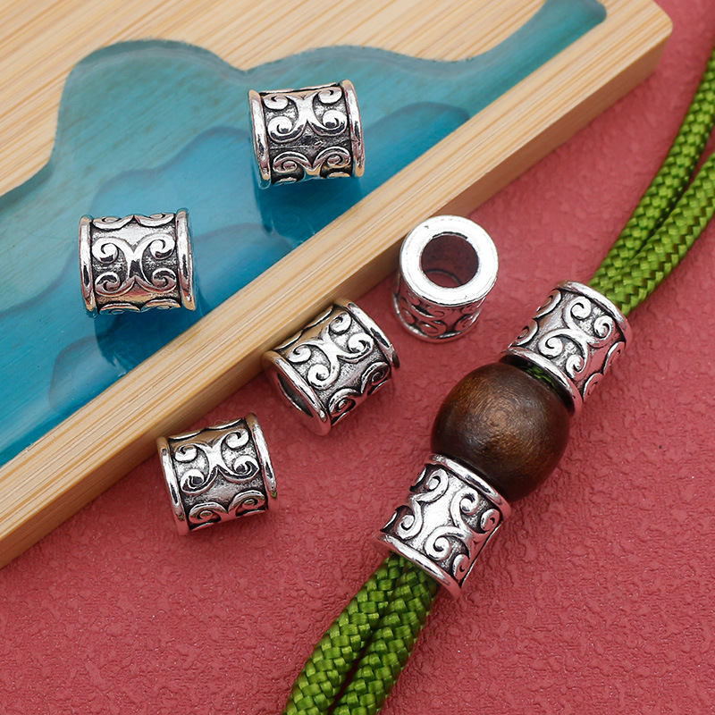 Perles de gros trou en alliage de zinc, pilier, Plaqué de couleur d'argent, DIY, 10x9.5mm, Trou:Environ 5mm, Environ 100PC/sac, Vendu par sac