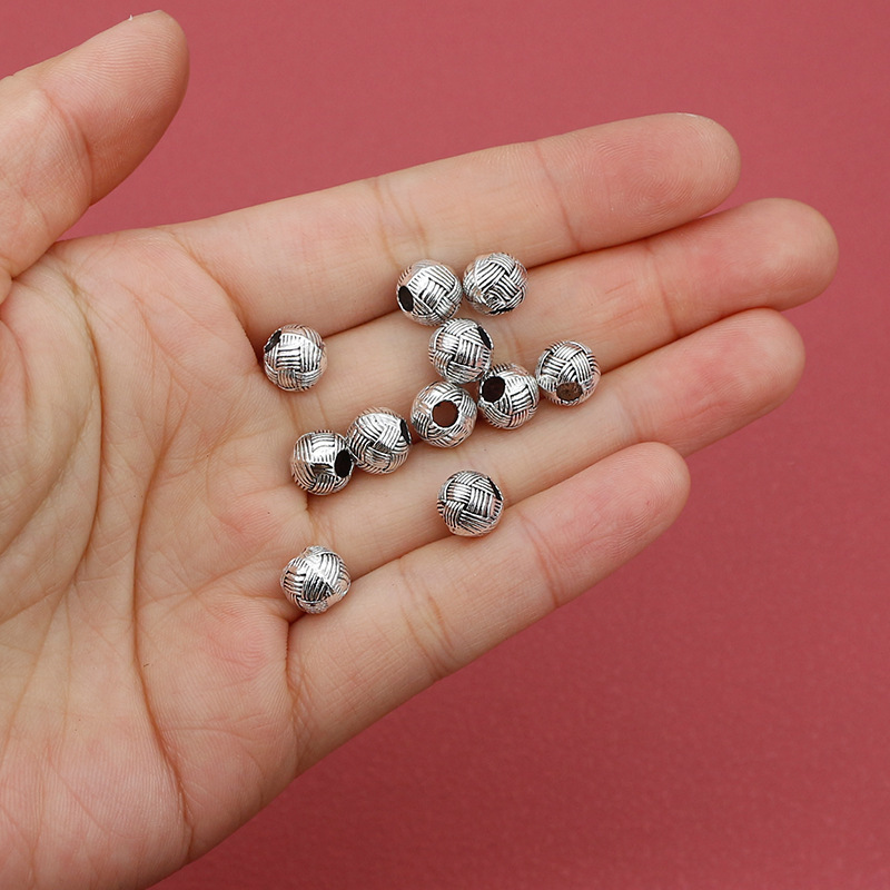 Perles de gros trou en alliage de zinc, Rond, Plaqué de couleur d'argent, DIY, 8x7mm, Trou:Environ 3mm, Environ 100PC/sac, Vendu par sac