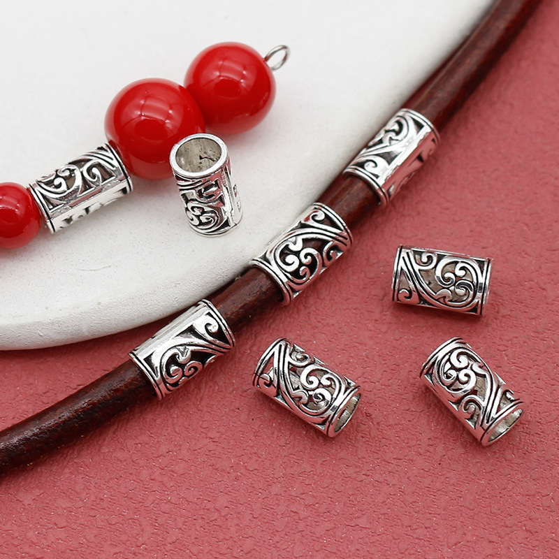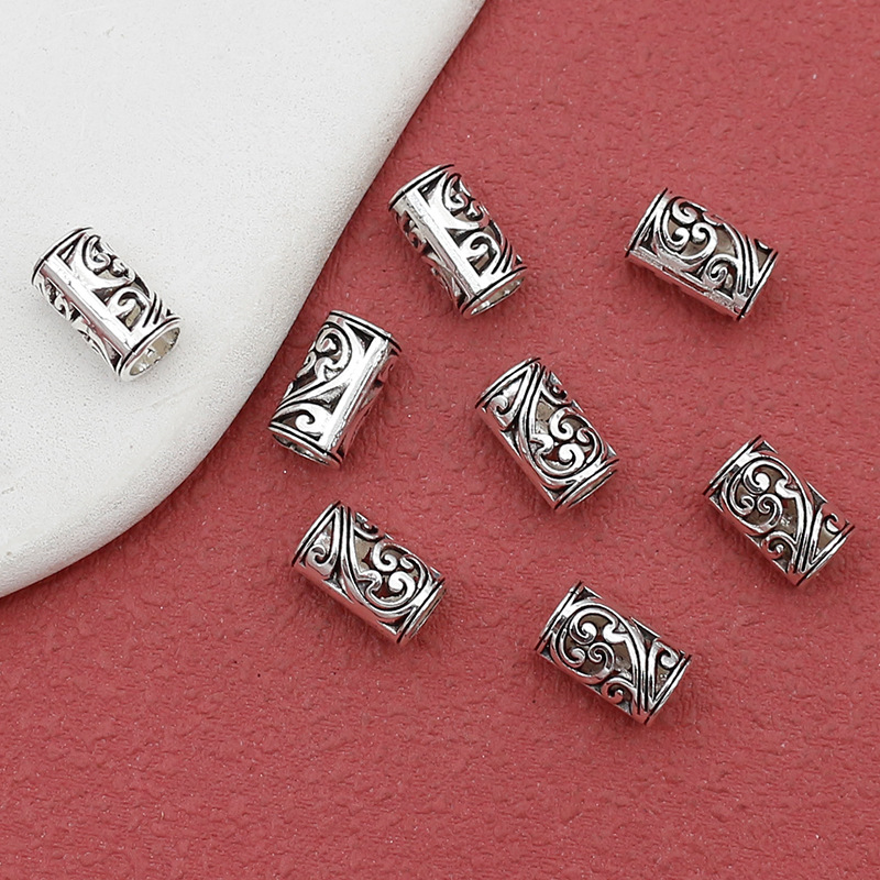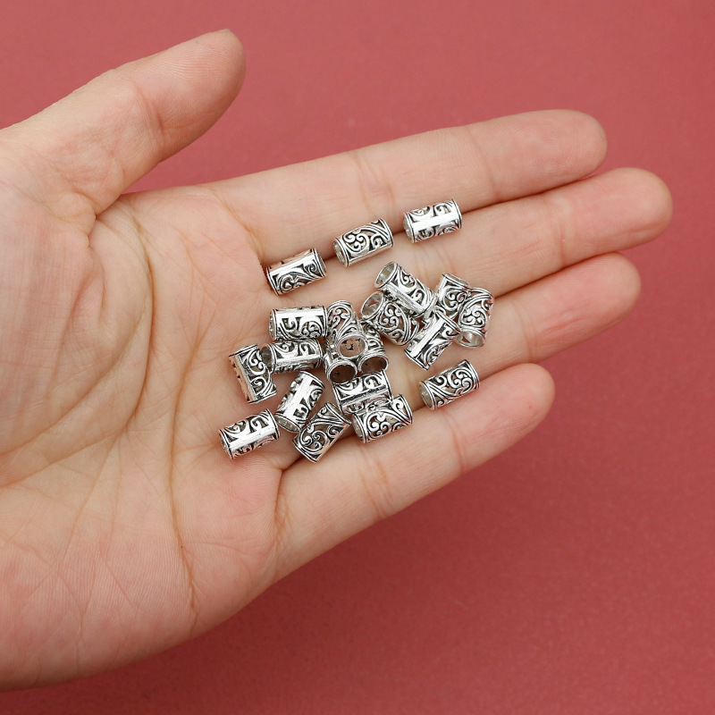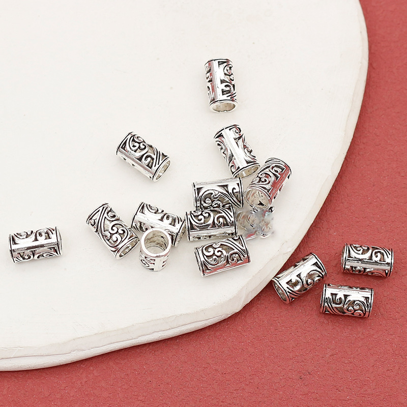Perles de gros trou en alliage de zinc, pilier, Plaqué de couleur d'argent, DIY, 9.5x5.5mm, Trou:Environ 4mm, Environ 100PC/sac, Vendu par sac