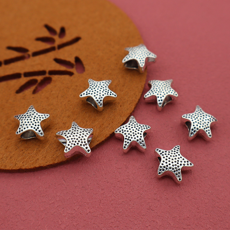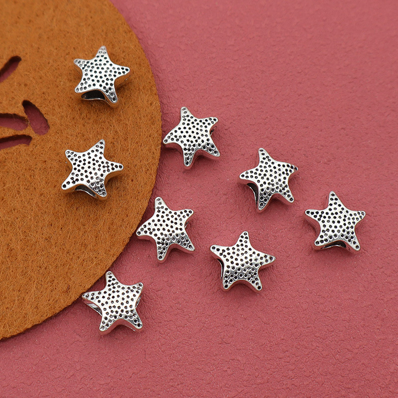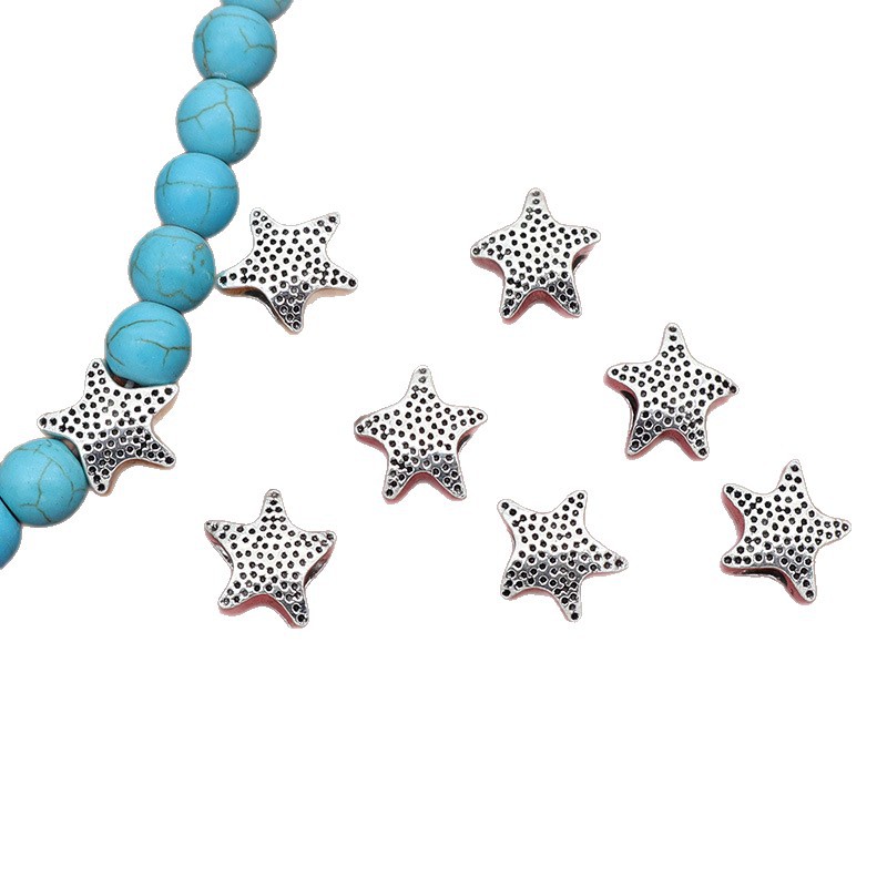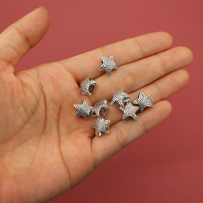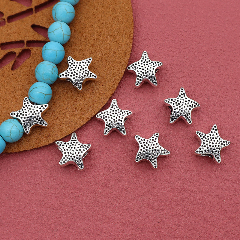 Perles de gros trou en alliage de zinc, étoile de mer, Placage de couleur argentée, DIY, 12x12x6mm, Diamètre intérieur:Environ 4.5mm, 100PC/sac, Vendu par sac