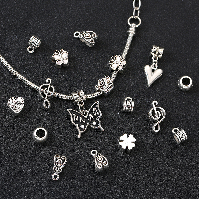 Perles de gros trou en alliage de zinc, Seau, Placage de couleur argentée, DIY & avec strass, plus de couleurs à choisir Environ Vendu par sac