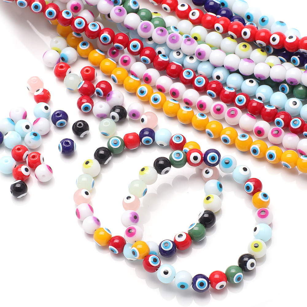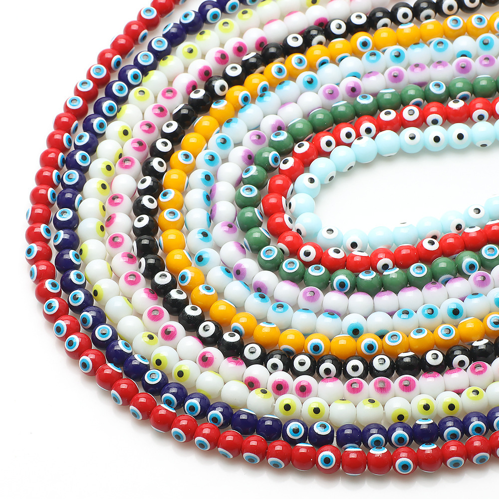 Perles de mauvais œil mode, verre, Impression, DIY, plus de couleurs à choisir, 50PC/brin, Vendu par brin