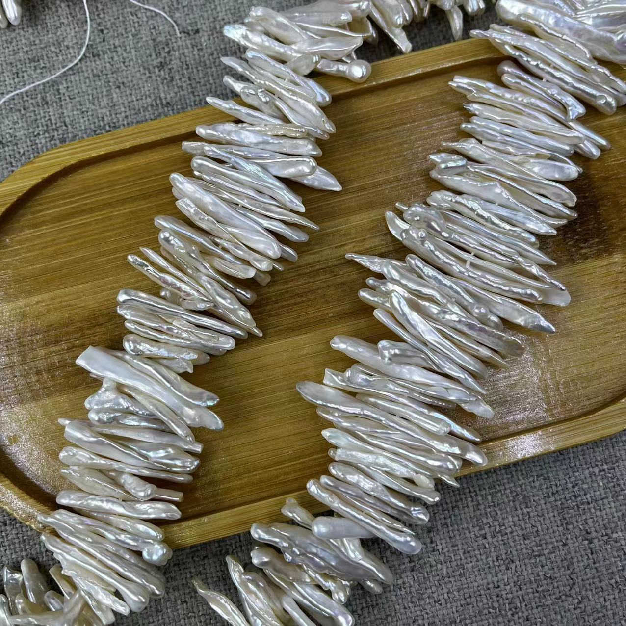 Perles de nacre de culture d'eau douce Biwa, perle d'eau douce cultivée, Pipa, DIY, blanc, Length about:20-30mm, Environ 180PC/brin, Vendu par brin