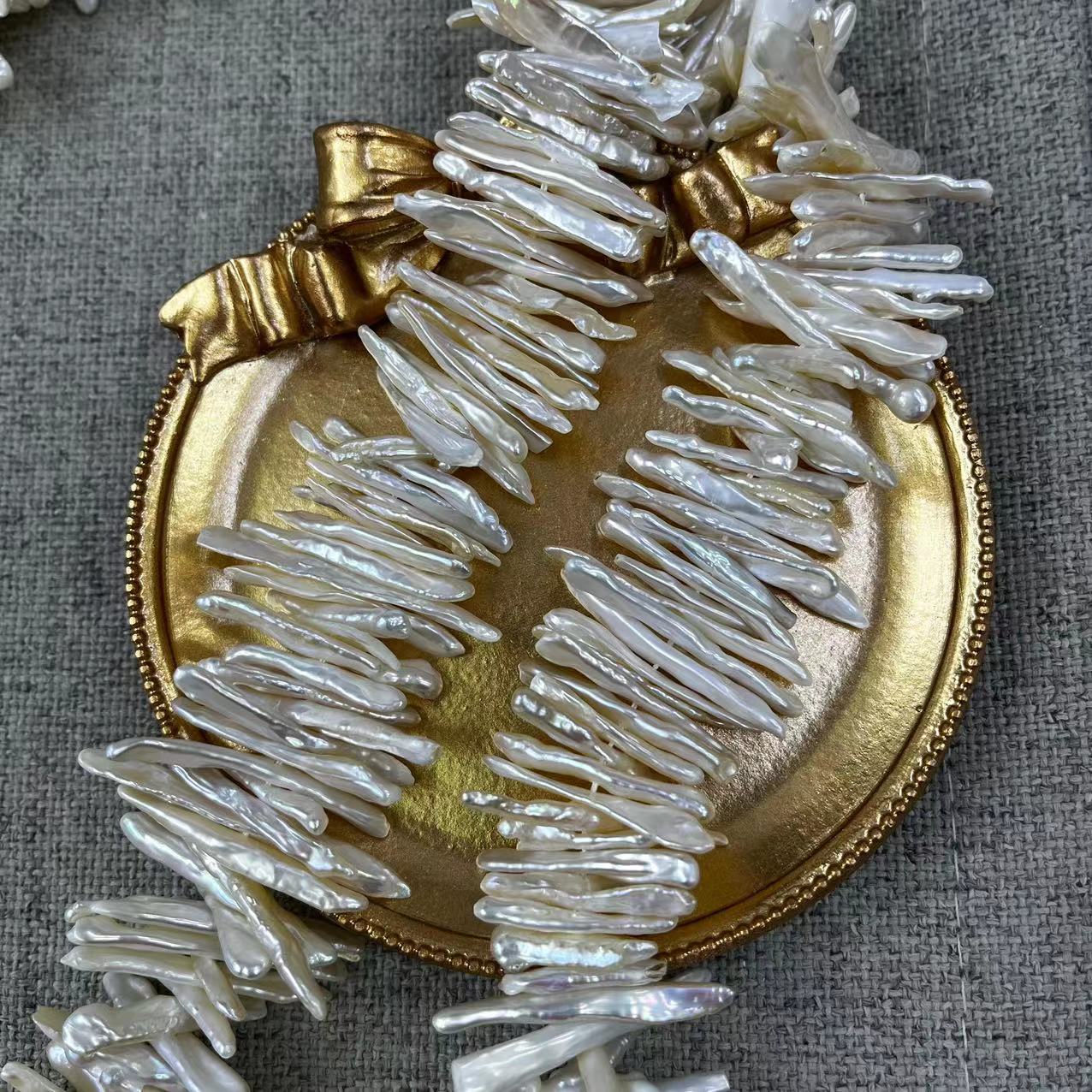 Perles de nacre de culture d'eau douce Biwa, perle d'eau douce cultivée, naturel, blanc, 16-25mm Environ 0.5mm pouce, Vendu par brin