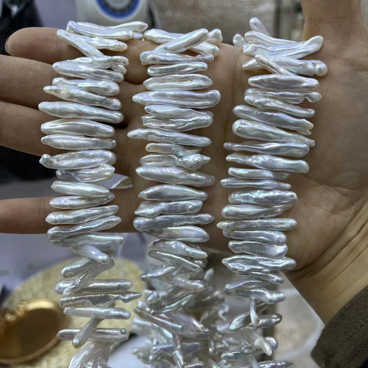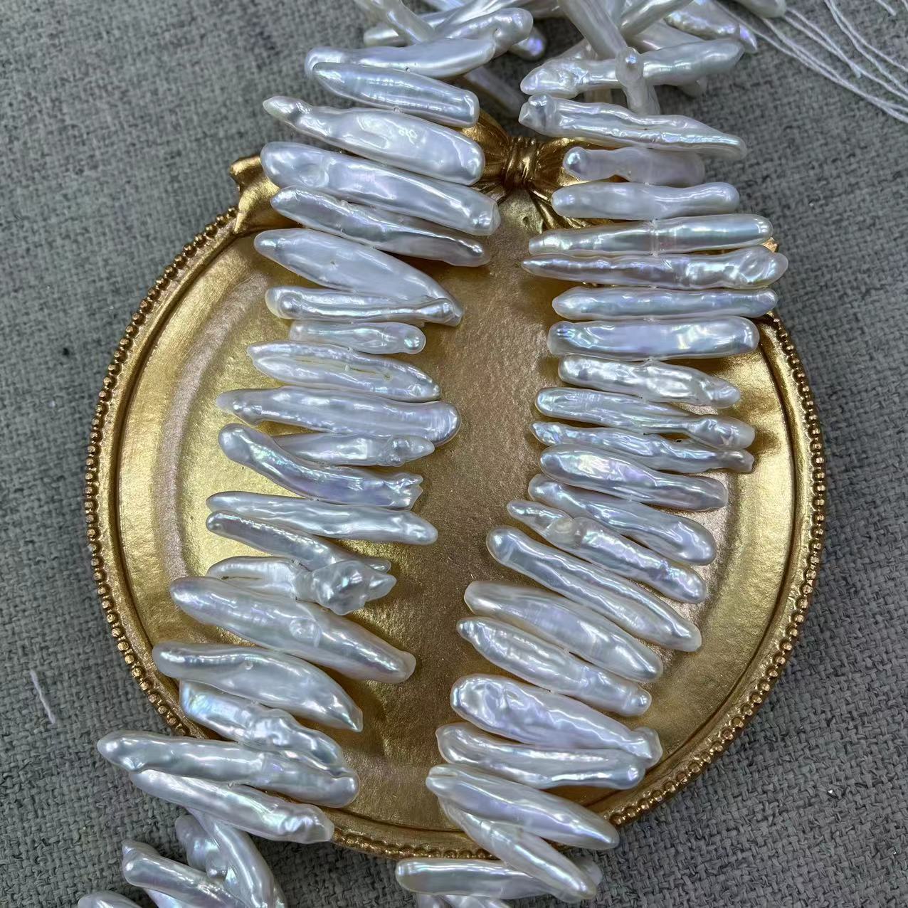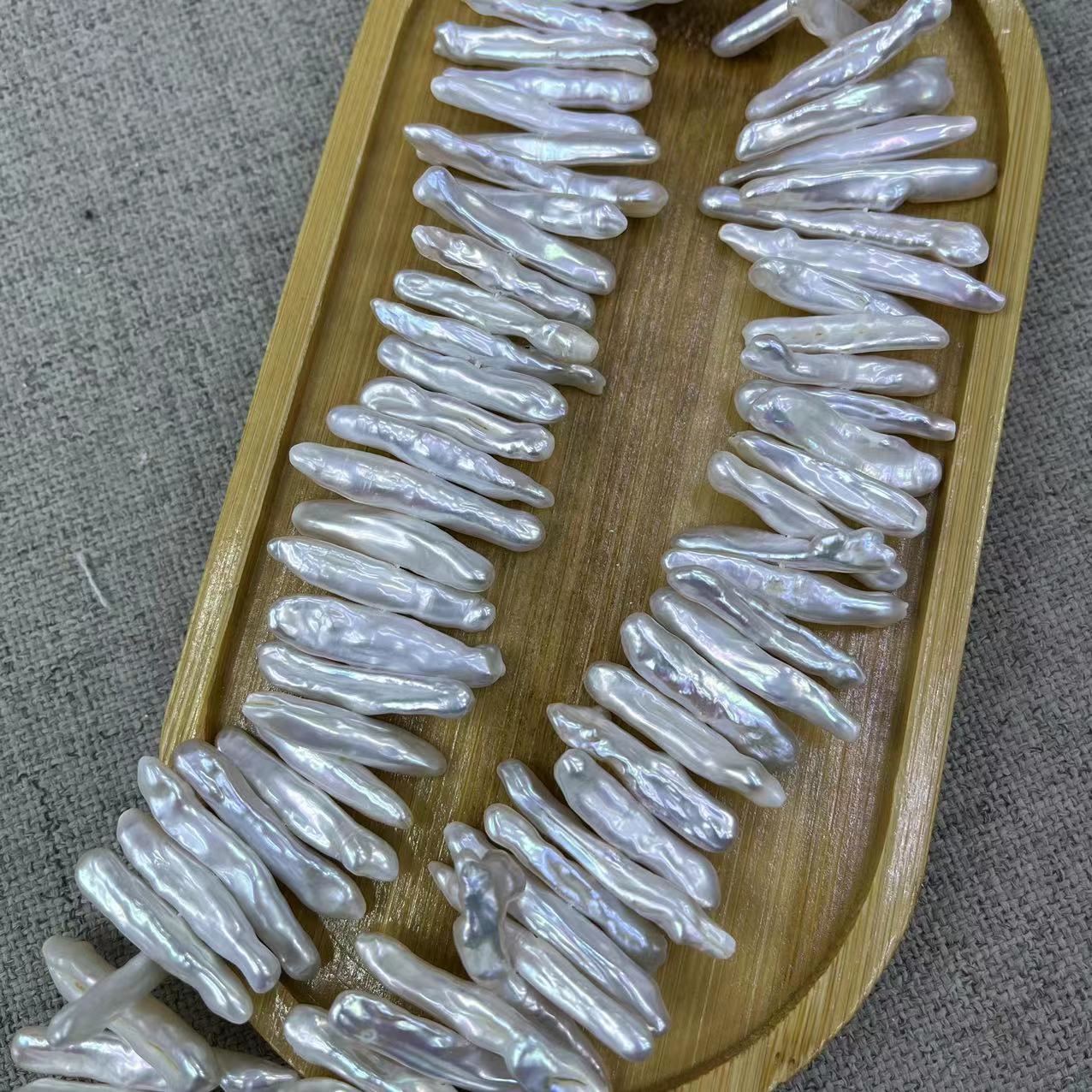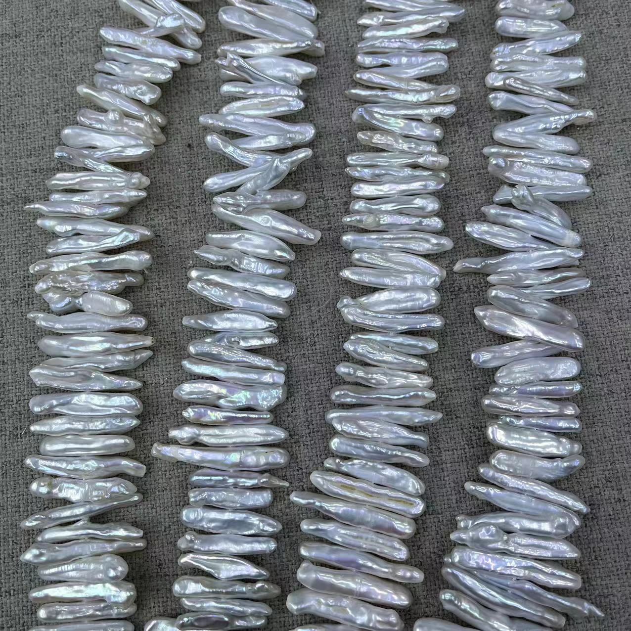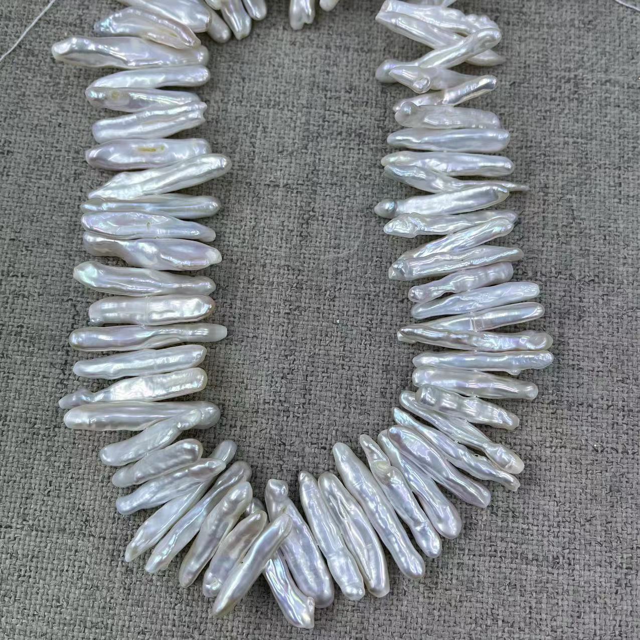 Perles de nacre de culture d'eau douce Biwa, perle d'eau douce cultivée, Pipa, DIY, blanc, about:25-35mm, Environ 79PC/brin, Vendu par brin