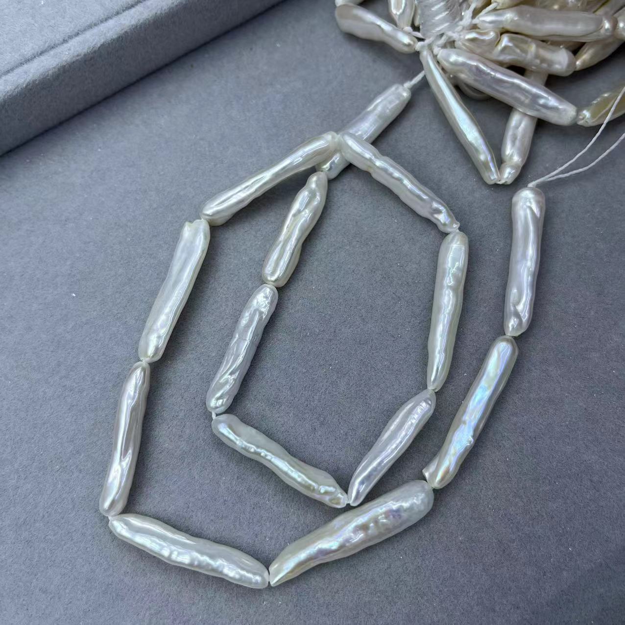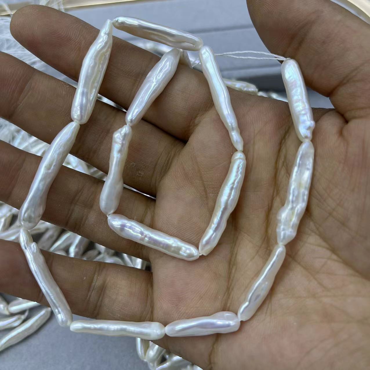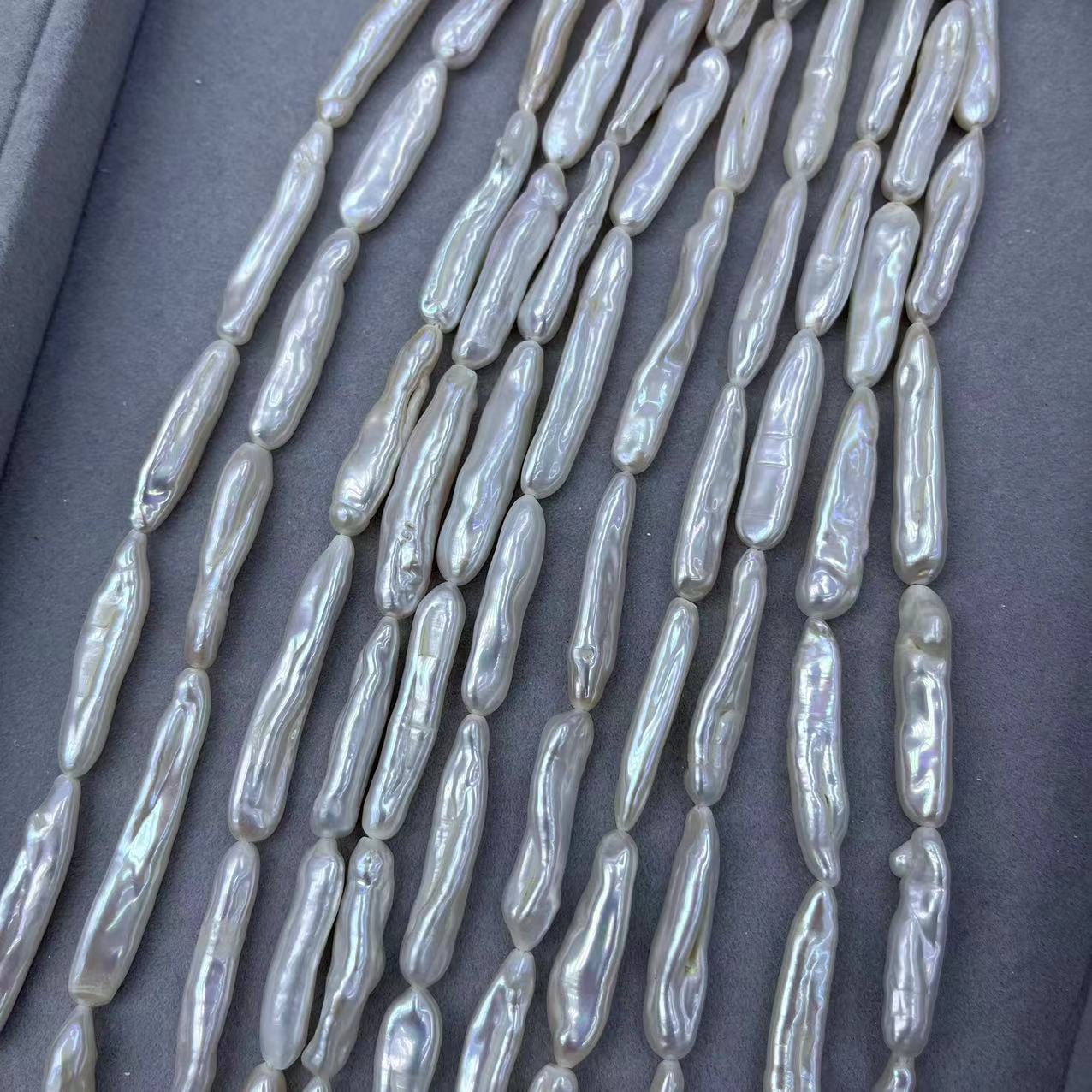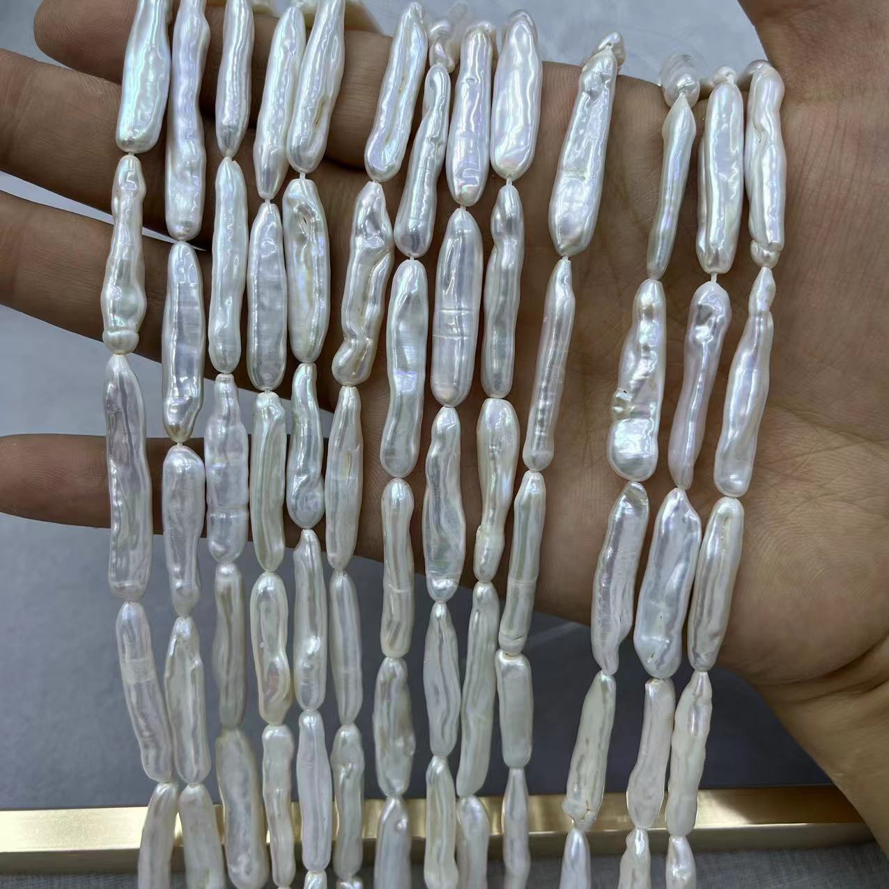 Perles de nacre de culture d'eau douce Biwa, perle d'eau douce cultivée, Pipa, DIY, blanc, 6x26mm, Environ 14PC/brin, Vendu par brin