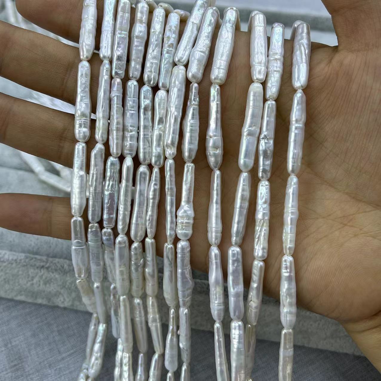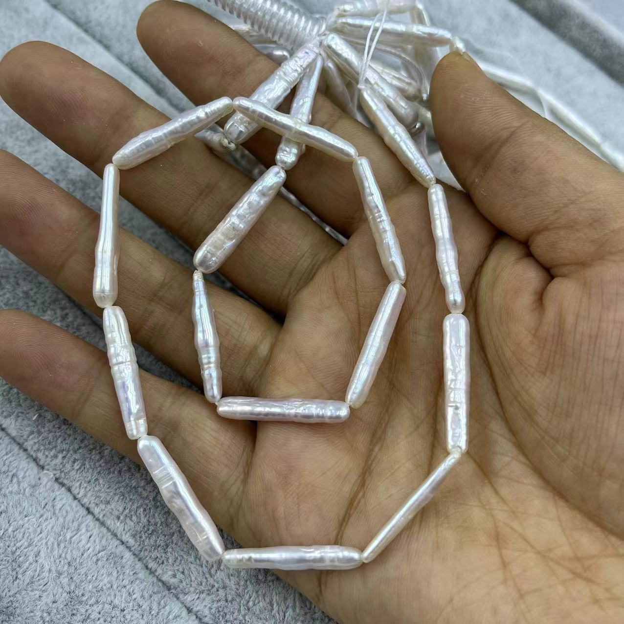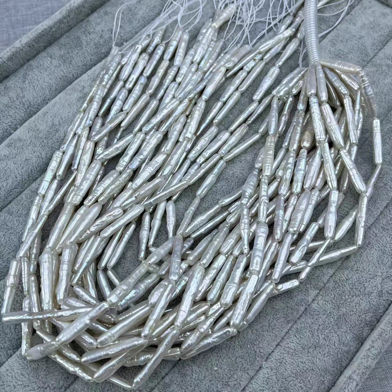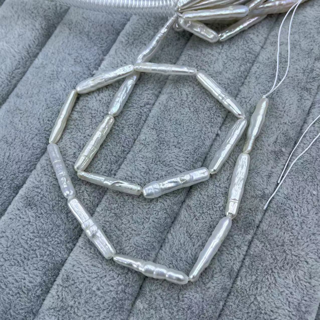 Perles de nacre de culture d'eau douce Biwa, perle d'eau douce cultivée, Pipa, DIY, blanc, 5x25mm, Environ 15PC/brin, Vendu par brin