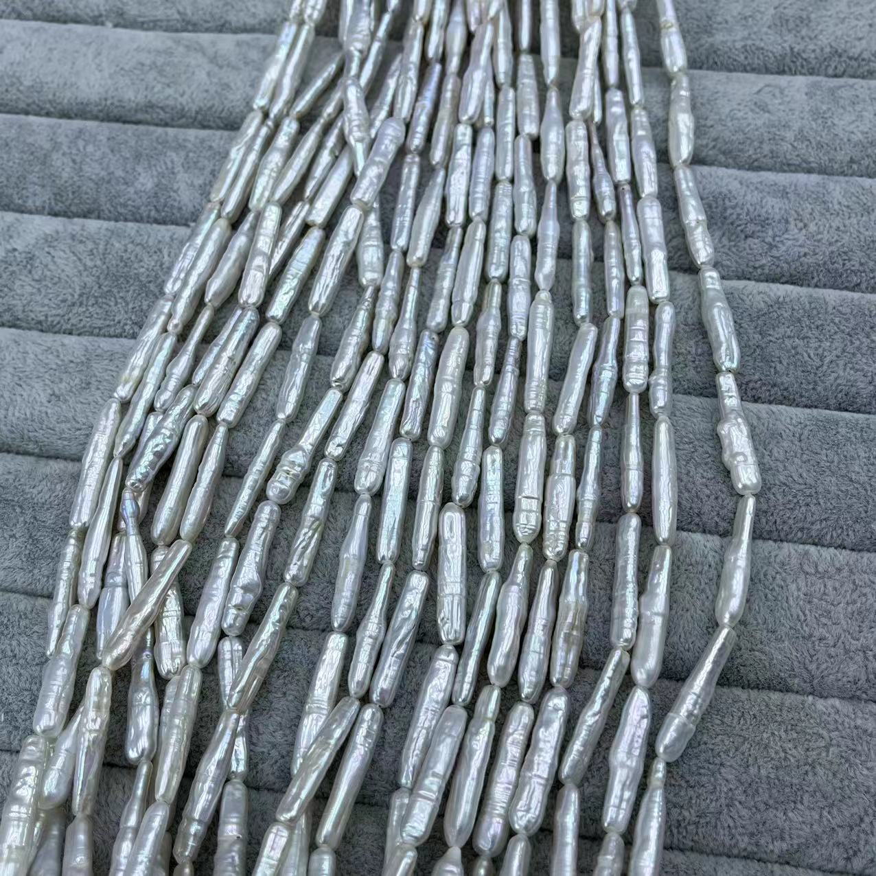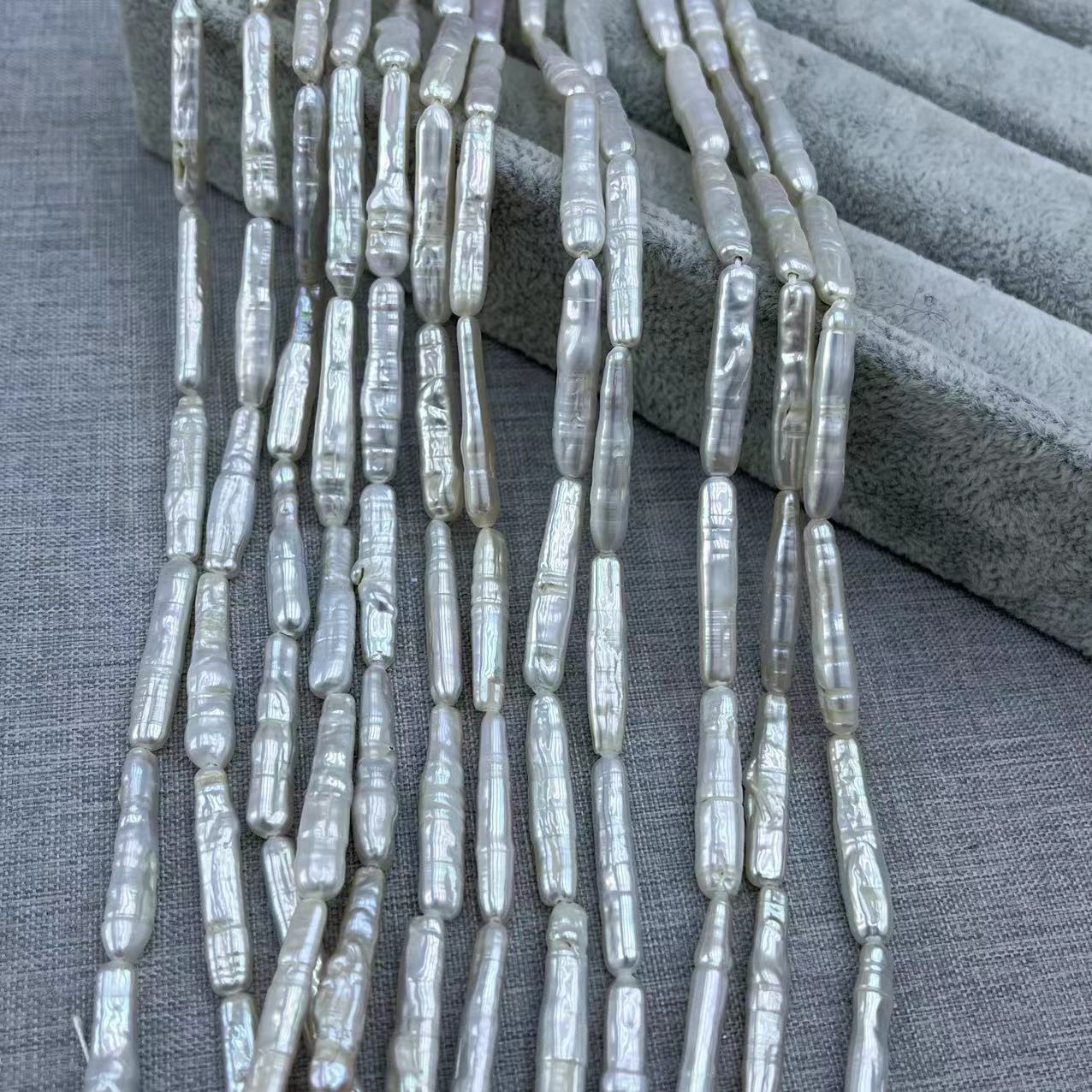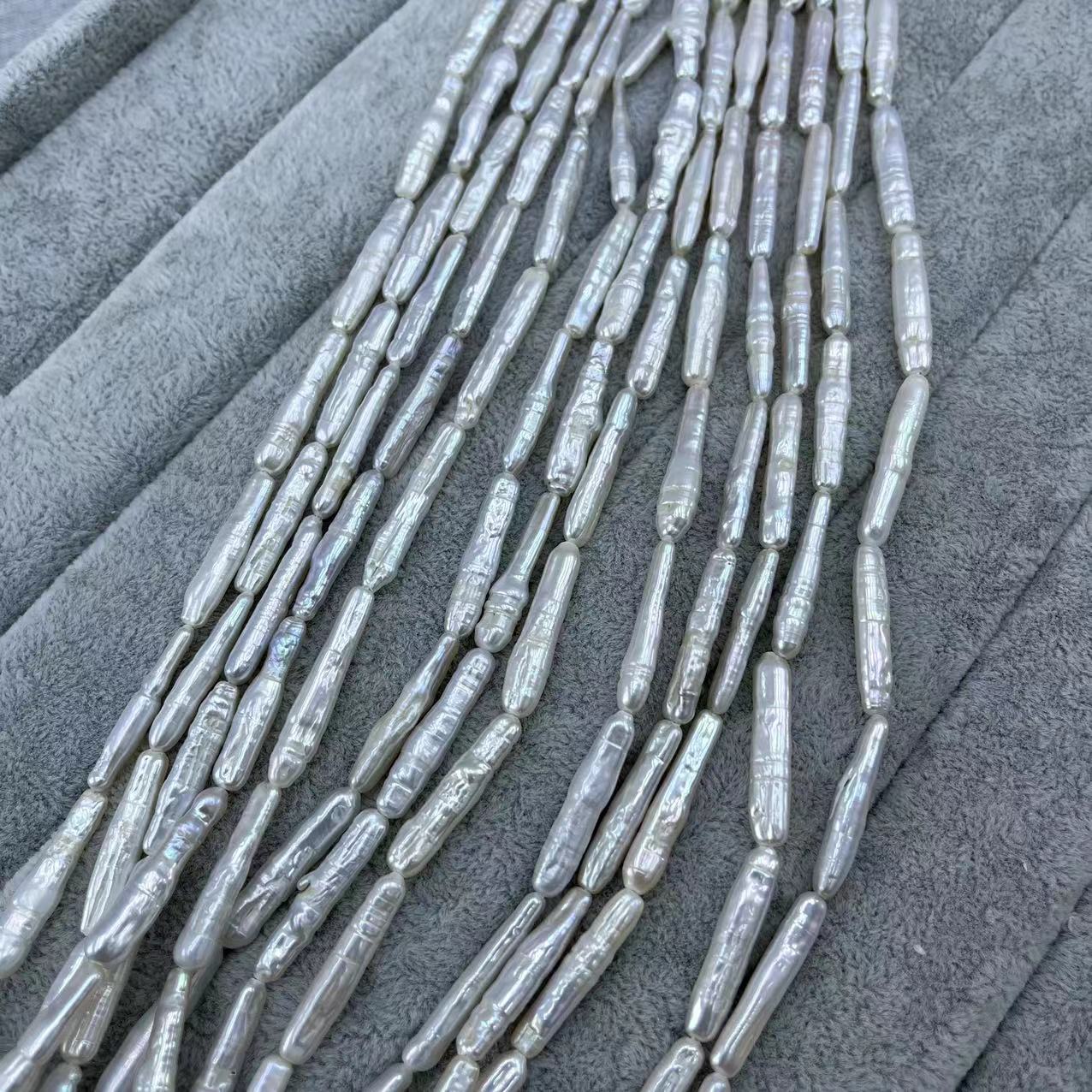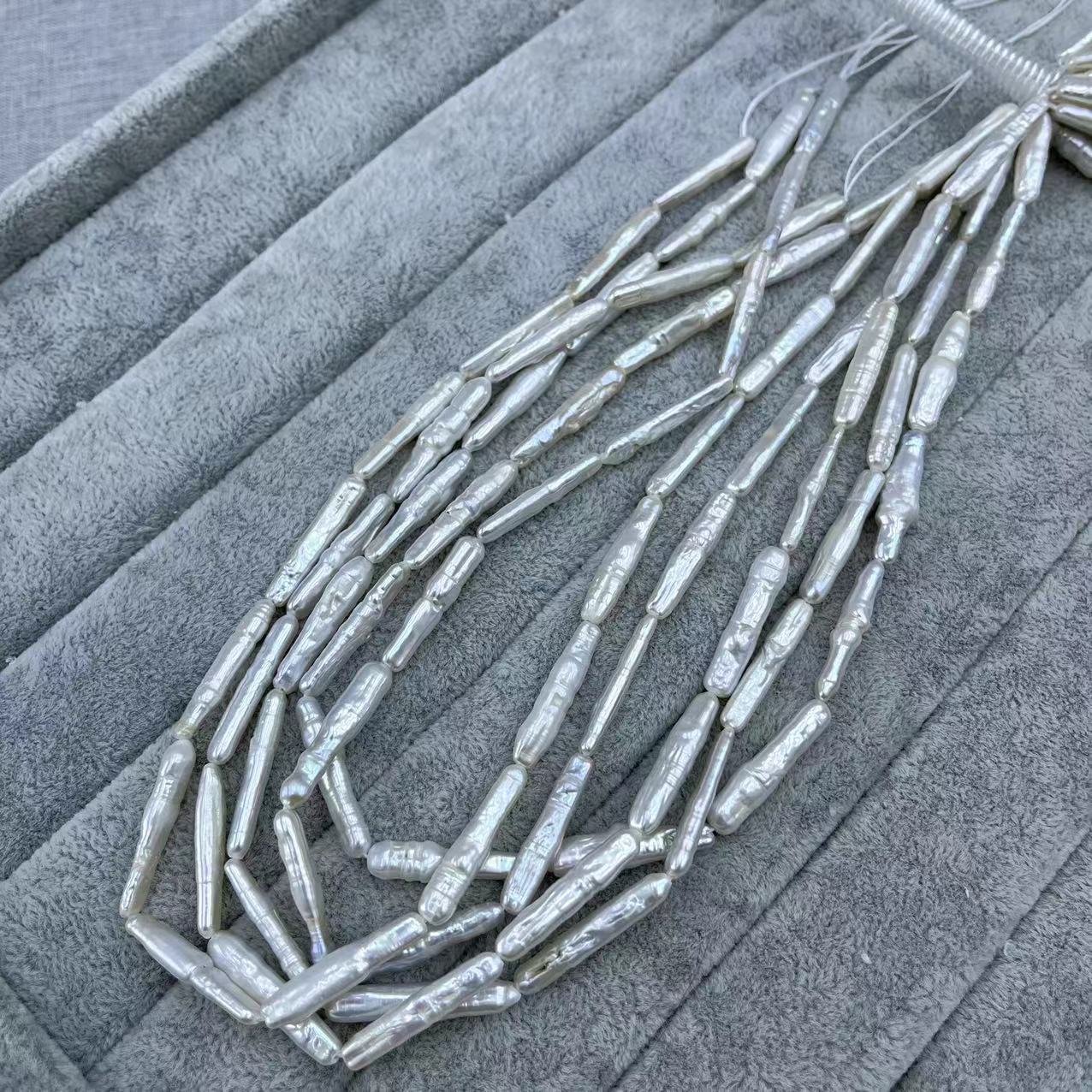 Perles de nacre de culture d'eau douce Biwa, perle d'eau douce cultivée, Pipa, DIY, blanc, 5x25mm, Environ 15PC/brin, Vendu par brin