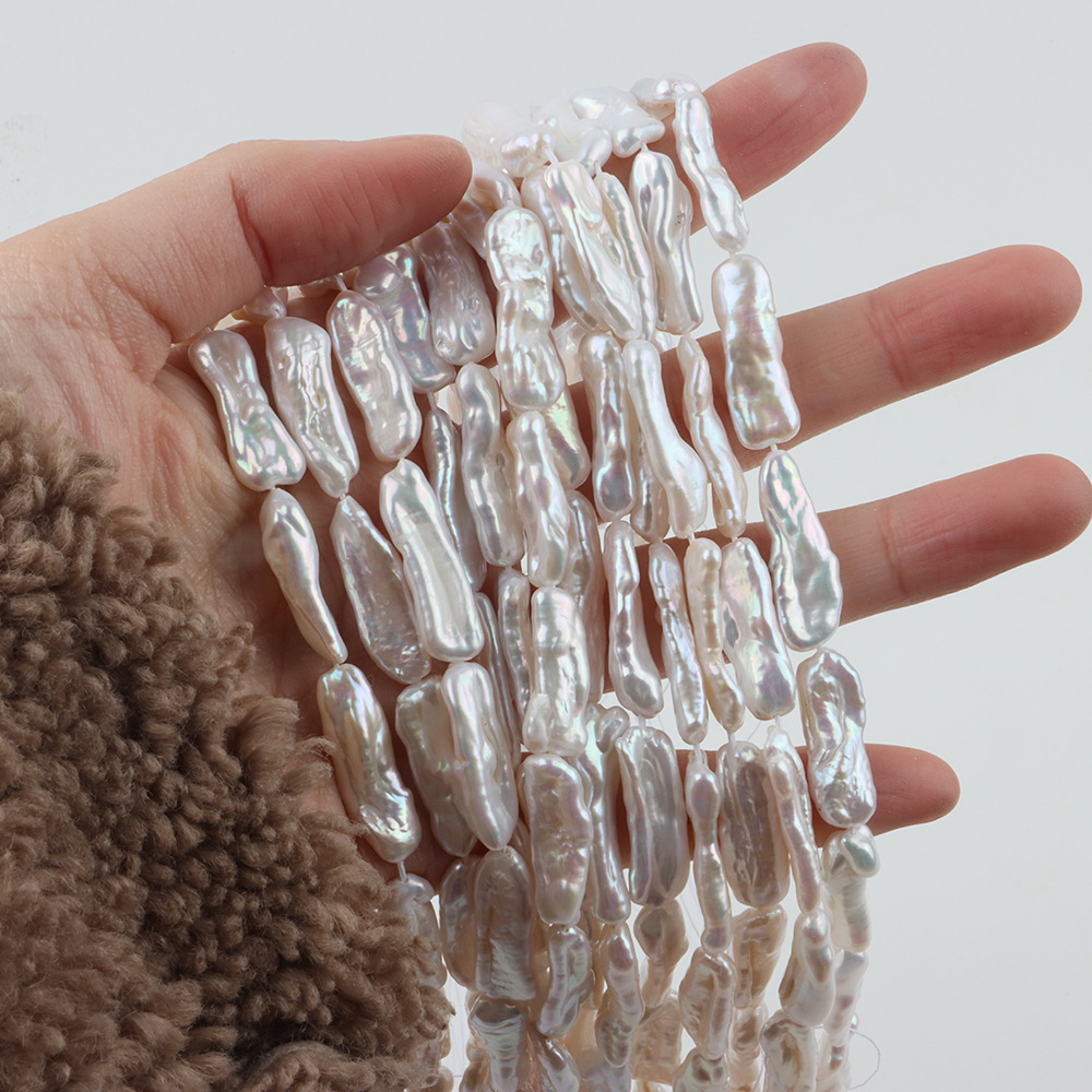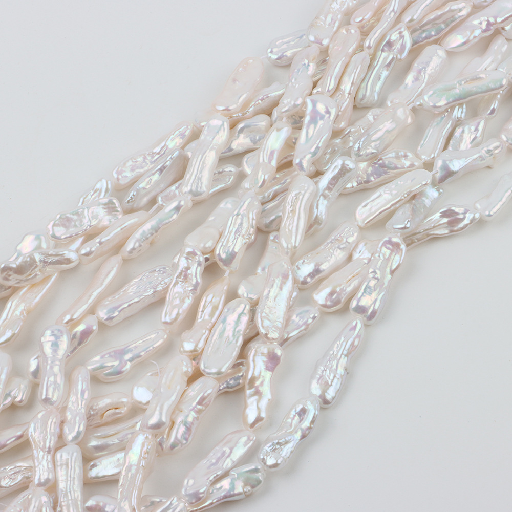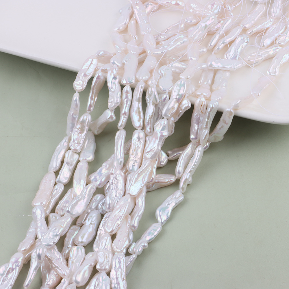 Perles de nacre de culture d'eau douce Biwa, perle d'eau douce cultivée, Pipa, DIY, blanc, About:6-7MM, Longueur:20-22 cm, Vendu par brin