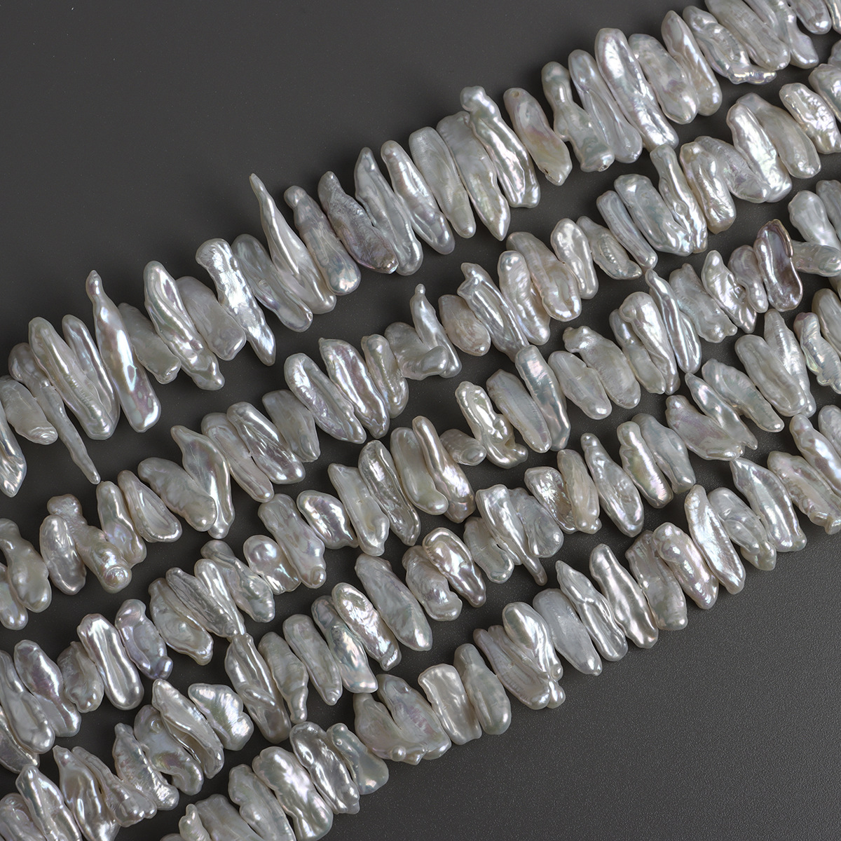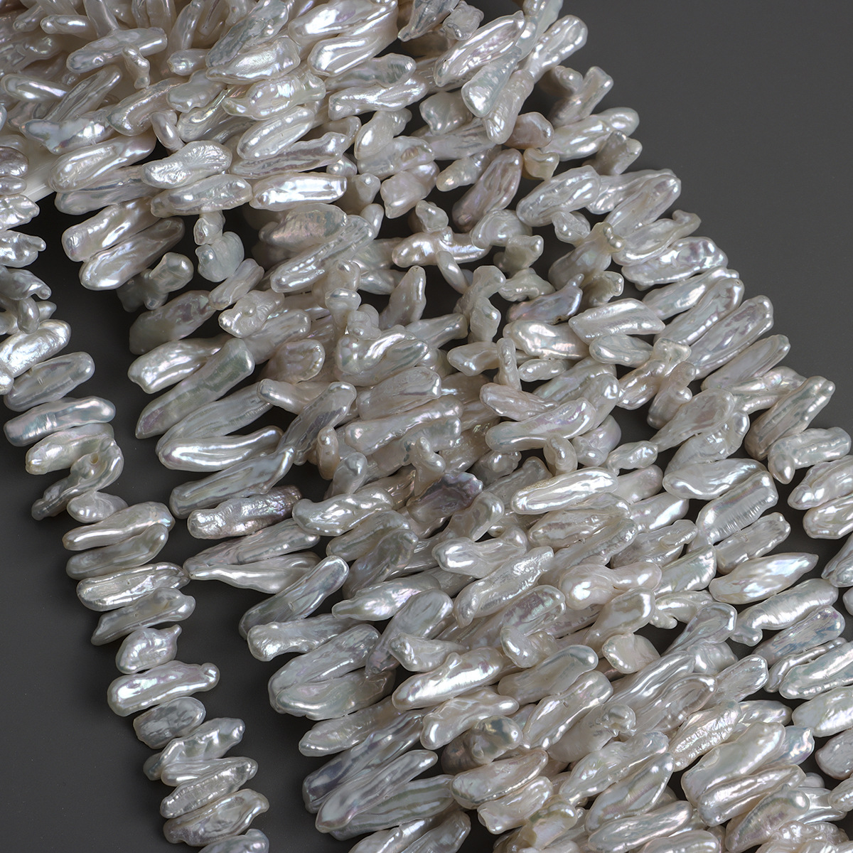 Perles de nacre de culture d'eau douce Biwa, perle d'eau douce cultivée, naturel, blanc, 10-22mm Environ 0.5mm pouce, Vendu par brin