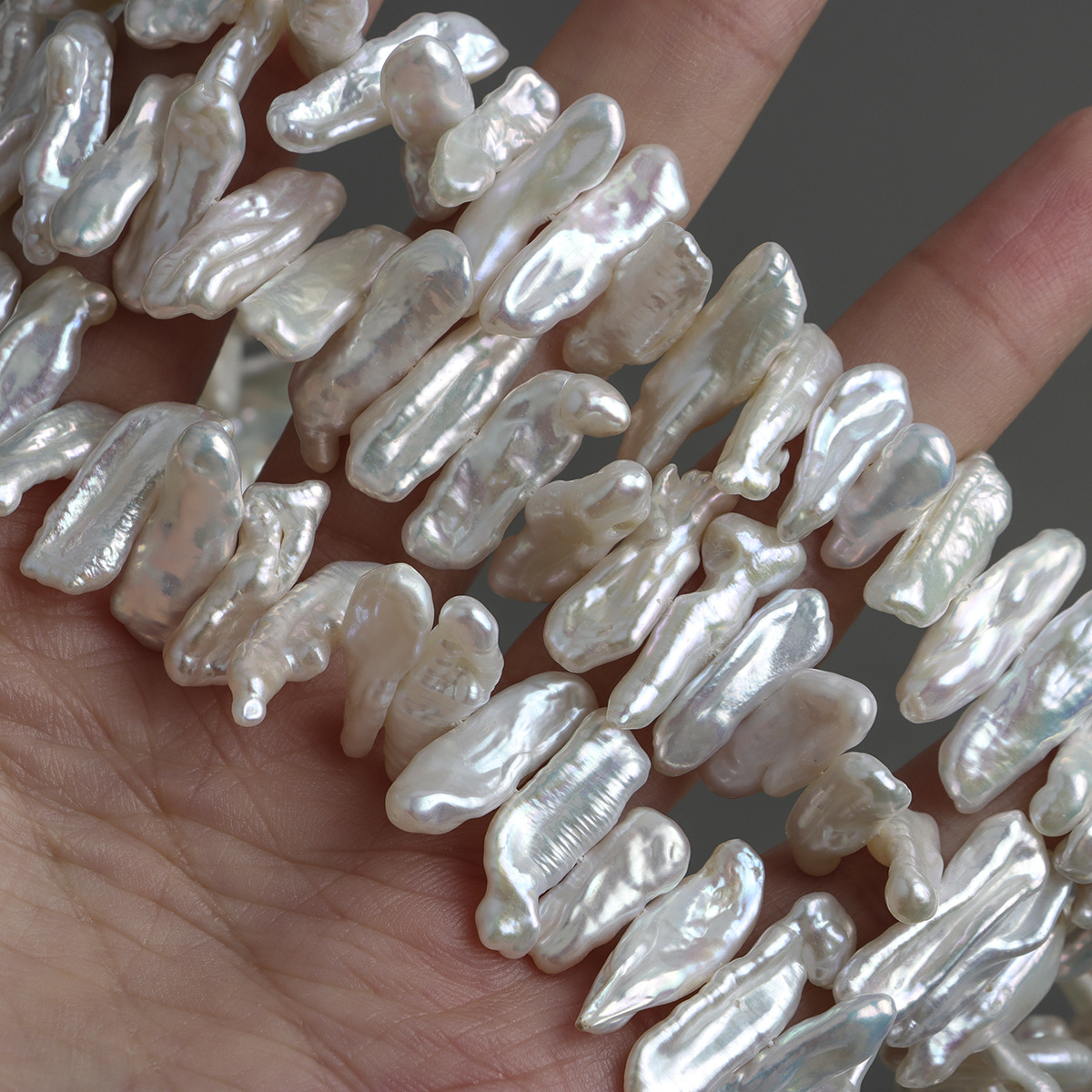 Perles de nacre de culture d'eau douce Biwa, perle d'eau douce cultivée, naturel, blanc, 16-25mm Environ 0.5mm pouce, Vendu par brin