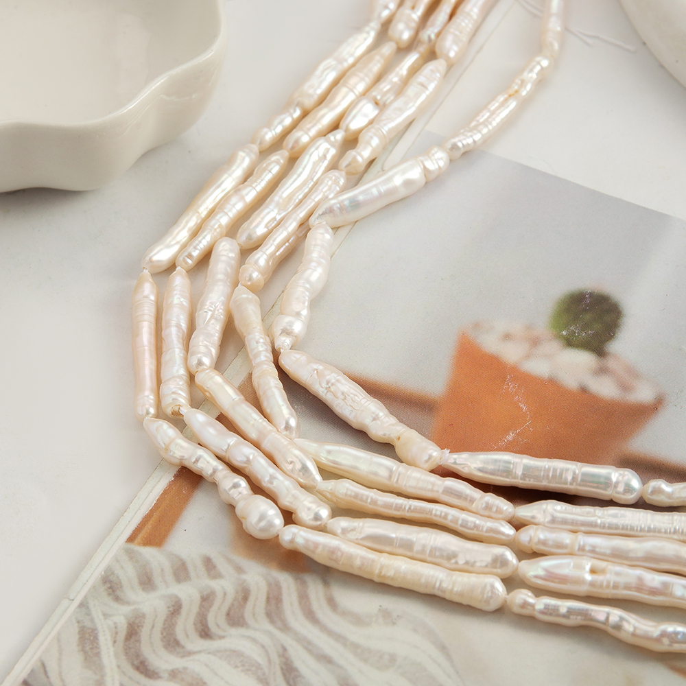Perles de nacre de culture d'eau douce Biwa, perle d'eau douce cultivée, Pipa, DIY, blanc, 35x5mm, 11PC/brin, Vendu par brin