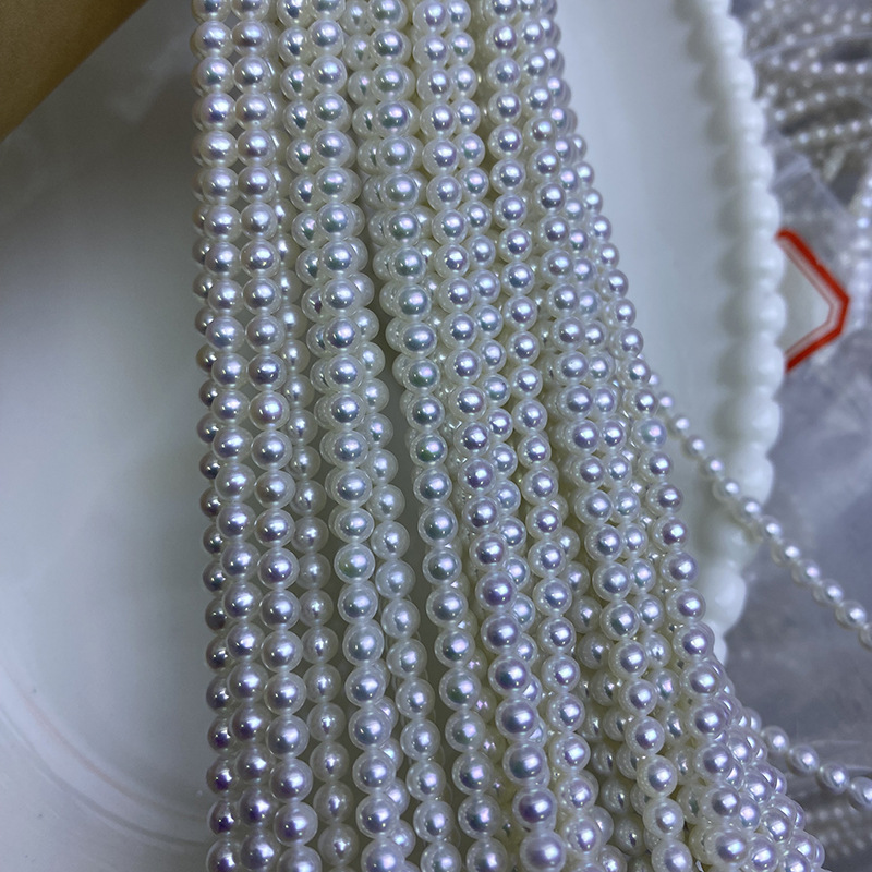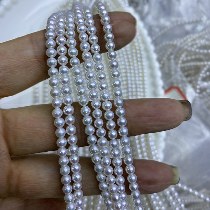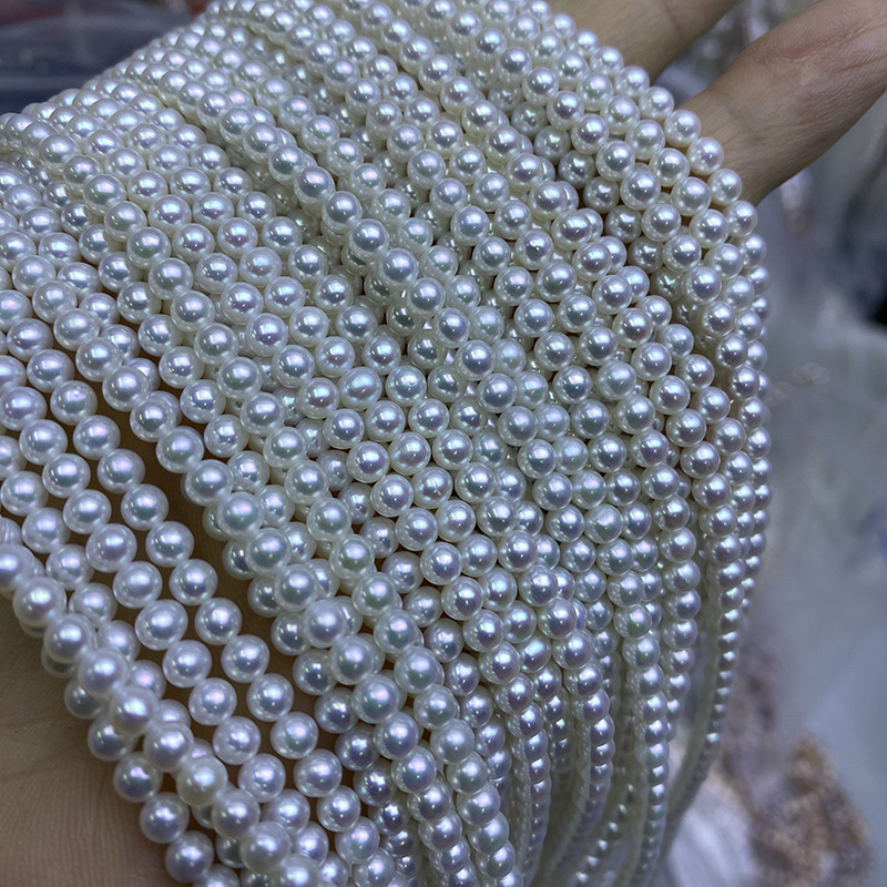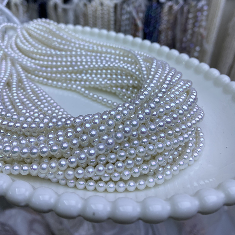 Perles de nacre rondes de culture d'eau douce, perle d'eau douce cultivée, DIY, blanc, About:3-4mm, Longueur:38-39 cm, Vendu par brin