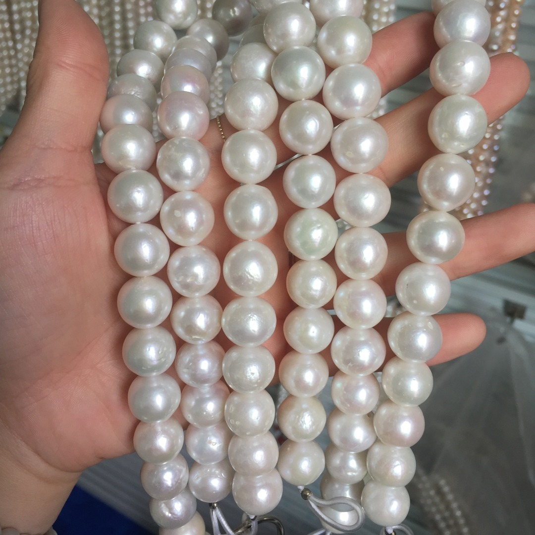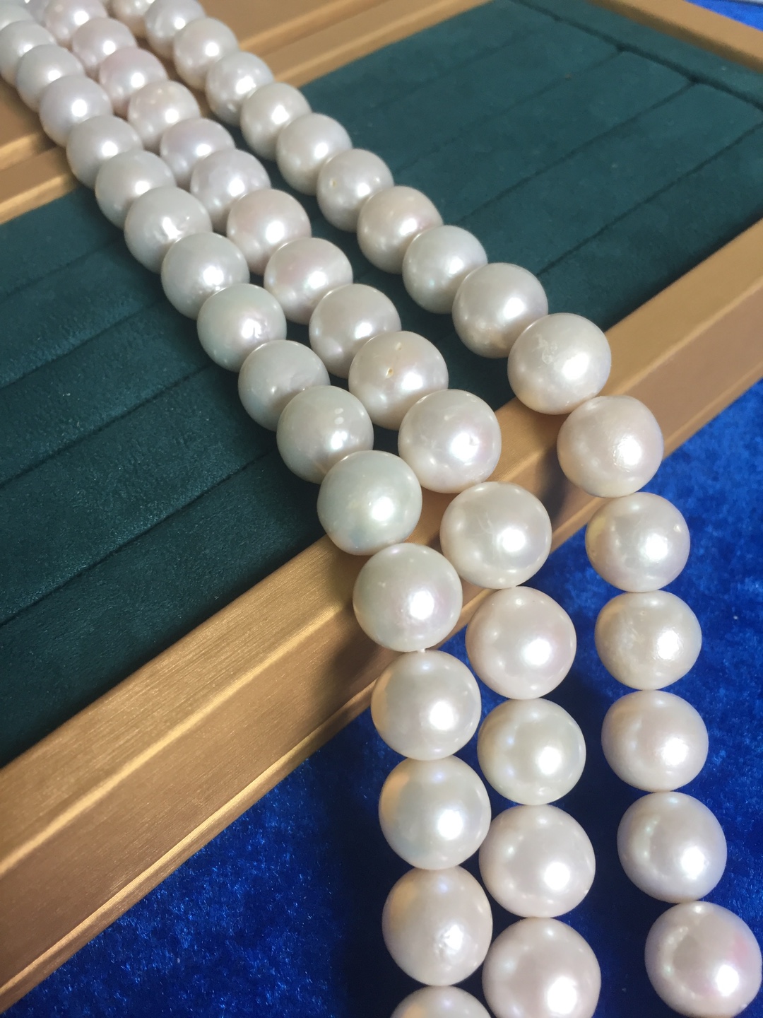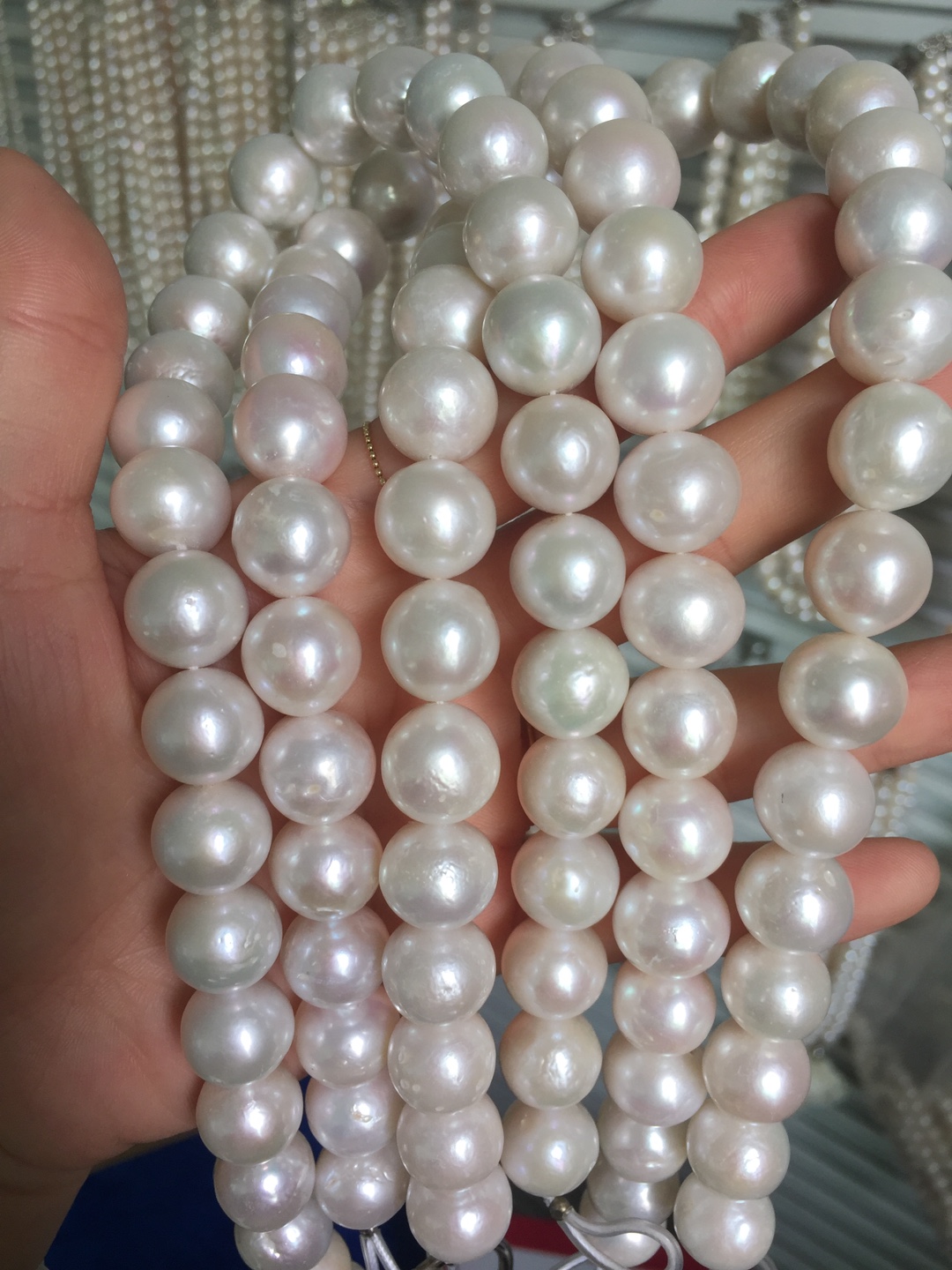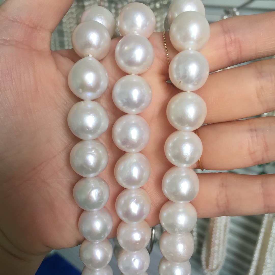 Perles de nacre rondes de culture d'eau douce, perle d'eau douce cultivée, DIY, blanc, About:13-15mm, Longueur:40 cm, Vendu par brin