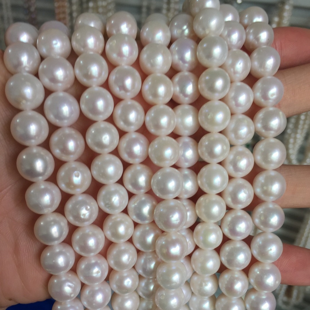 Perles de nacre rondes de culture d'eau douce, perle d'eau douce cultivée, DIY, blanc, About:10-11MM, Longueur:40 cm, Vendu par brin