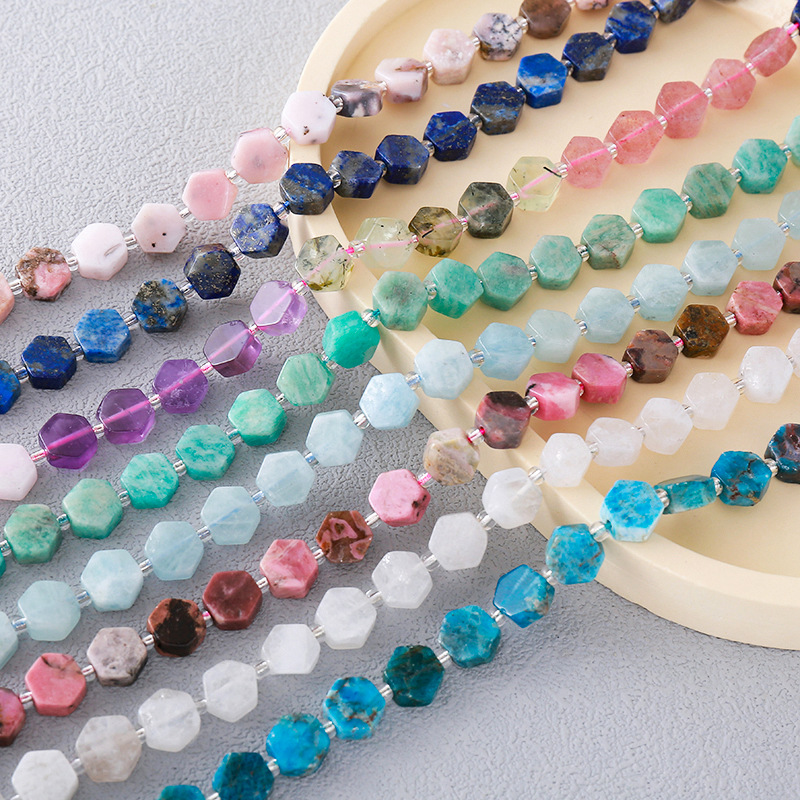 Perles de pierre gemme unique, Pierre naturelle, hexagone, DIY & différents matériaux pour le choix, plus de couleurs à choisir, 9x5mm, Environ 36PC/brin, Vendu par brin