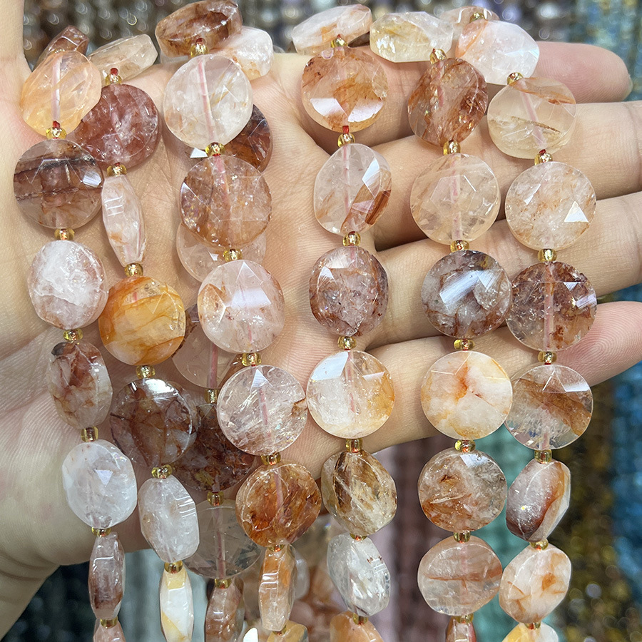 Perles de pierre gemme unique, Marbre rouge, avec Seedbead, Plat rond, DIY, couleurs mélangées, 15mm, Longueur:38 cm, Vendu par brin