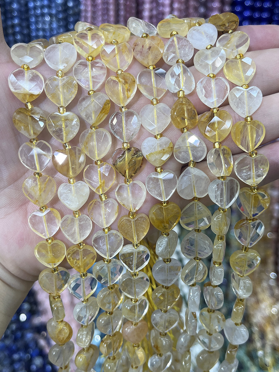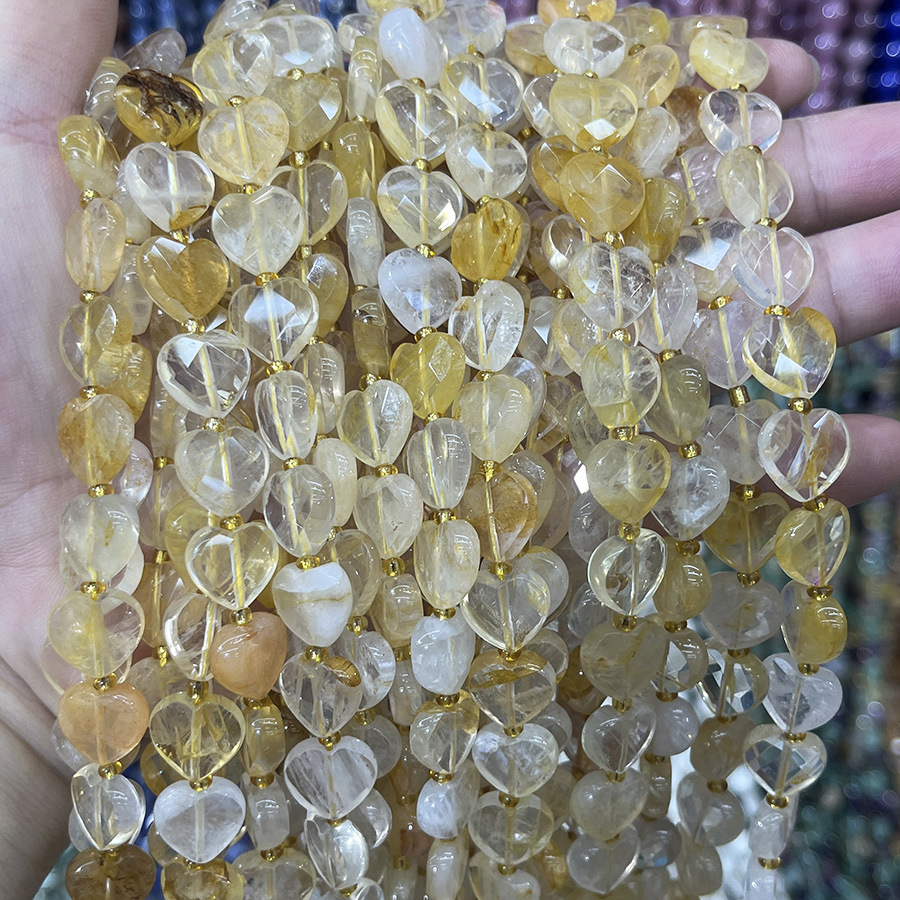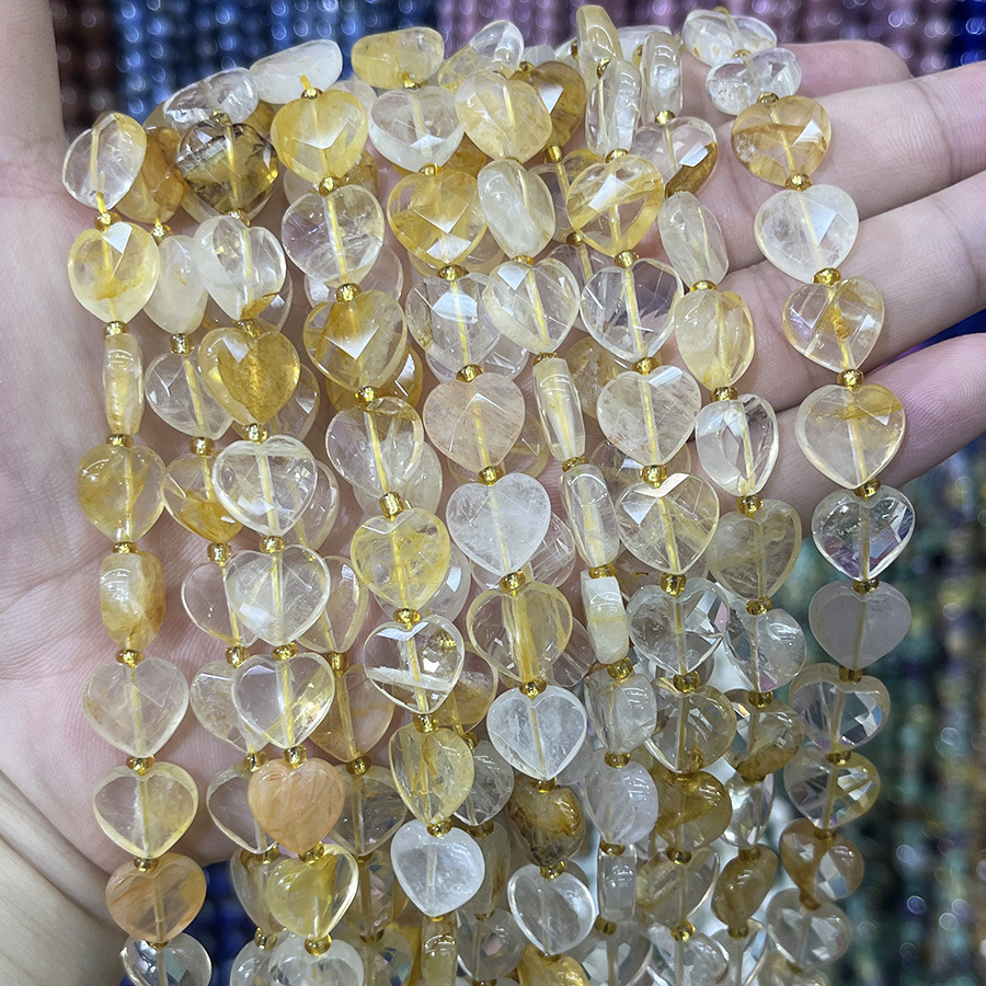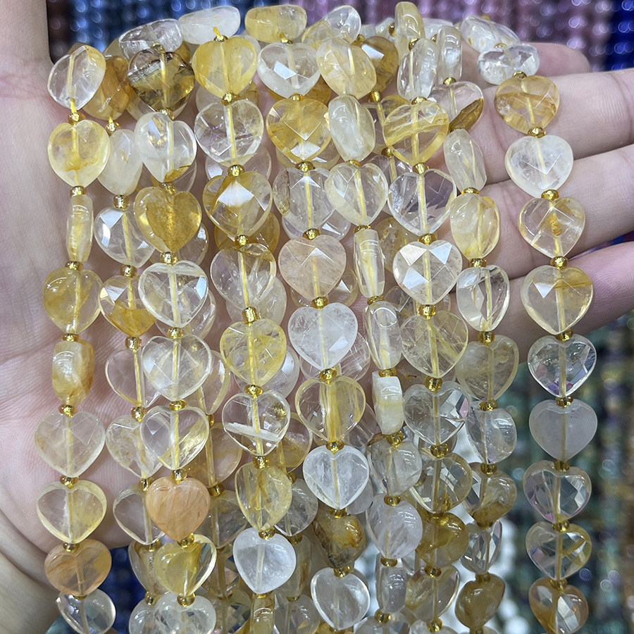 Perles de pierre gemme unique, Le Golden healer quartz, avec Seedbead, coeur, DIY, couleurs mélangées, 12mm, Longueur:38 cm, Vendu par brin