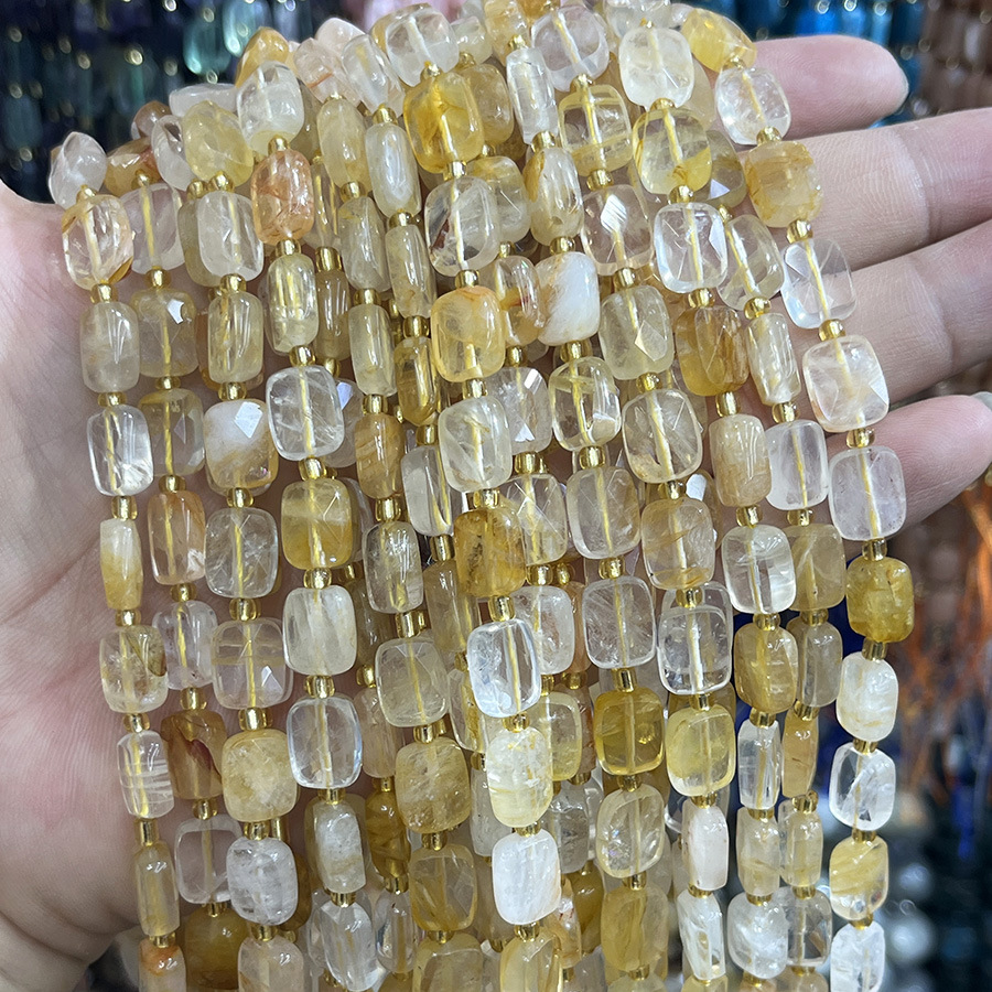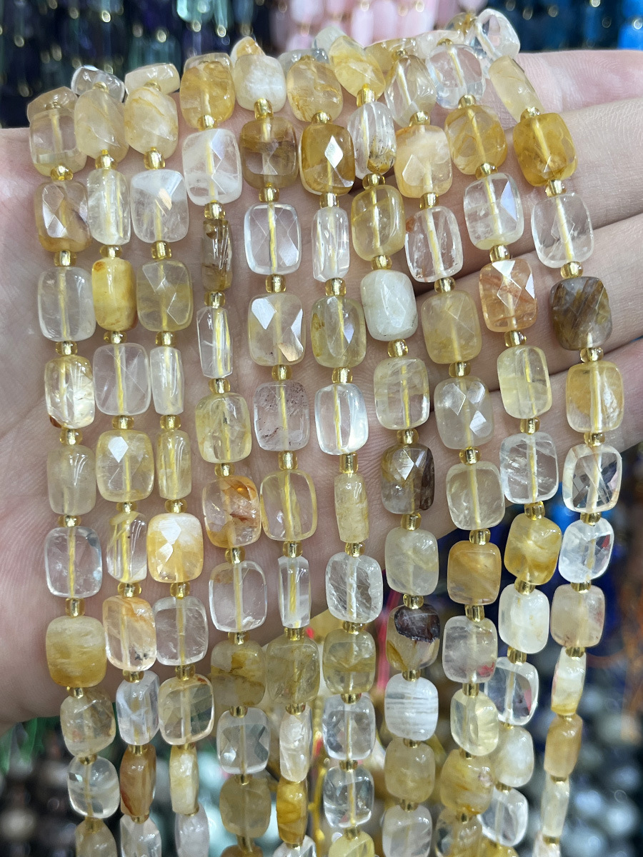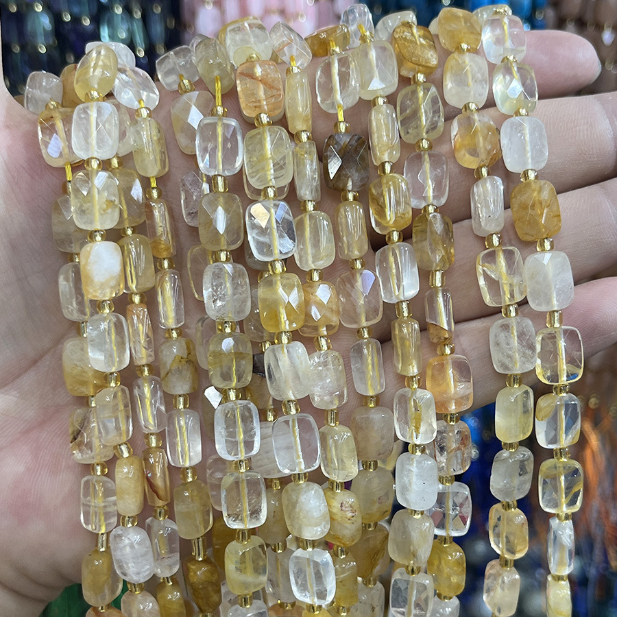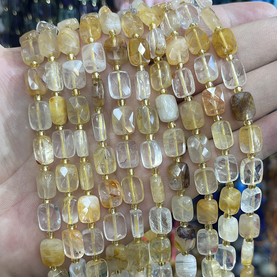 Perles de pierre gemme unique, Le Golden healer quartz, avec Seedbead, DIY, couleurs mélangées, 8x10mm, Longueur:38 cm, Vendu par brin