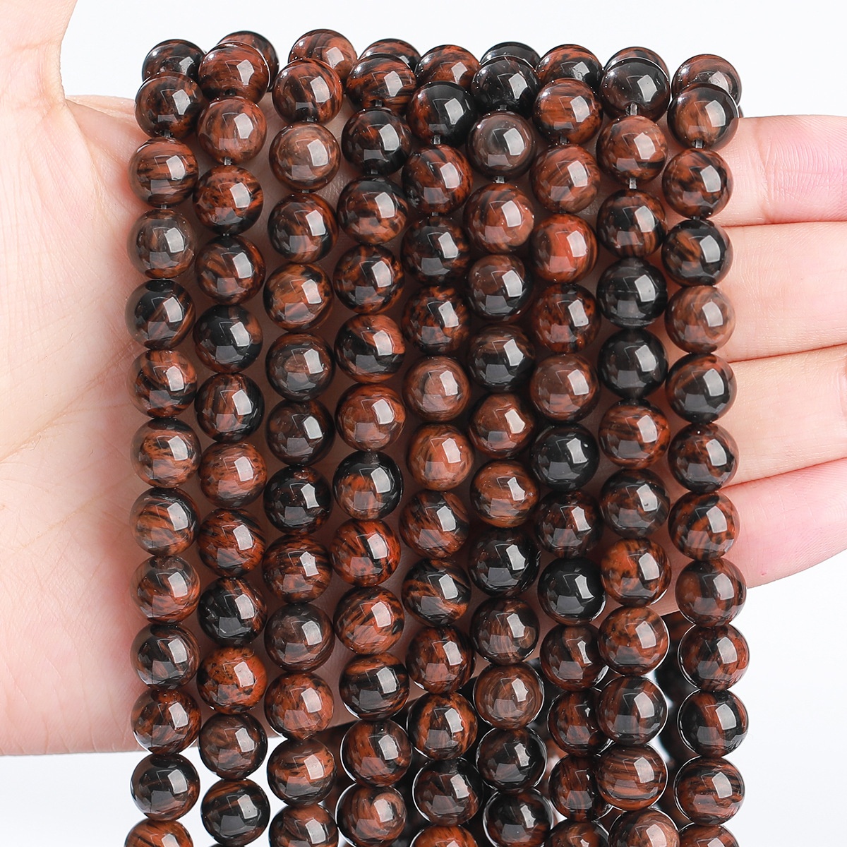 Perles de pierre gemme unique, Obsidienne rouge, Rond, poli, DIY, 8mm, Longueur:Environ 35-38 cm, Vendu par brin