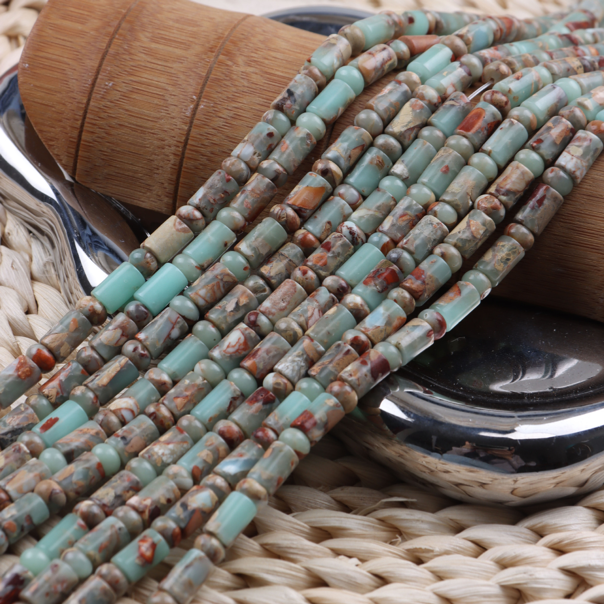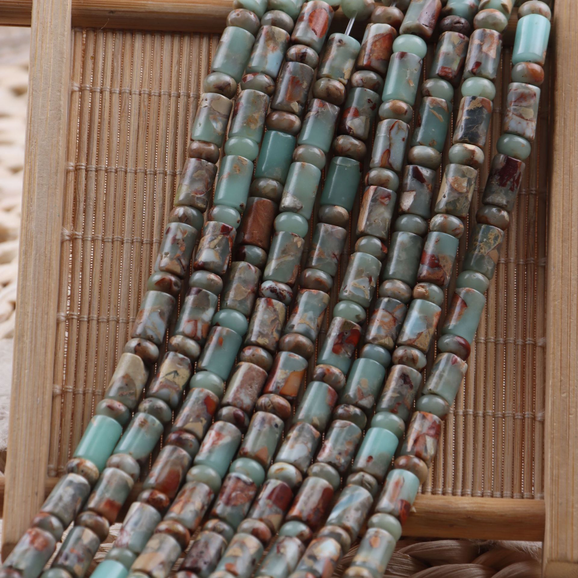 Perles de pierre gemme unique, Pierre peau de serpent, DIY, plus de couleurs à choisir, 6x9mm, Longueur:36 cm, Vendu par brin