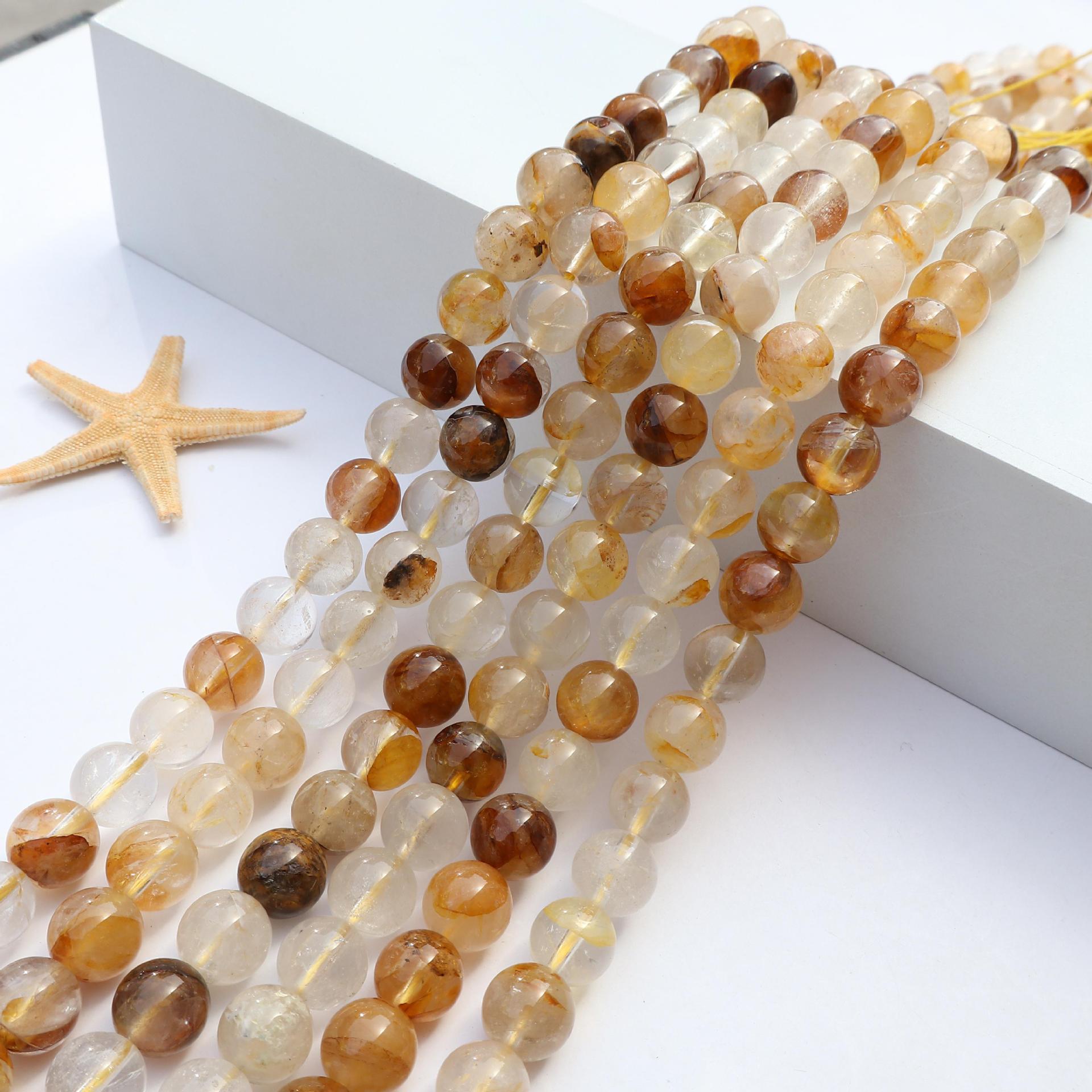Perles de pierre gemme unique, Le Golden healer quartz, DIY, couleurs mélangées, Longueur:38 cm, Vendu par brin